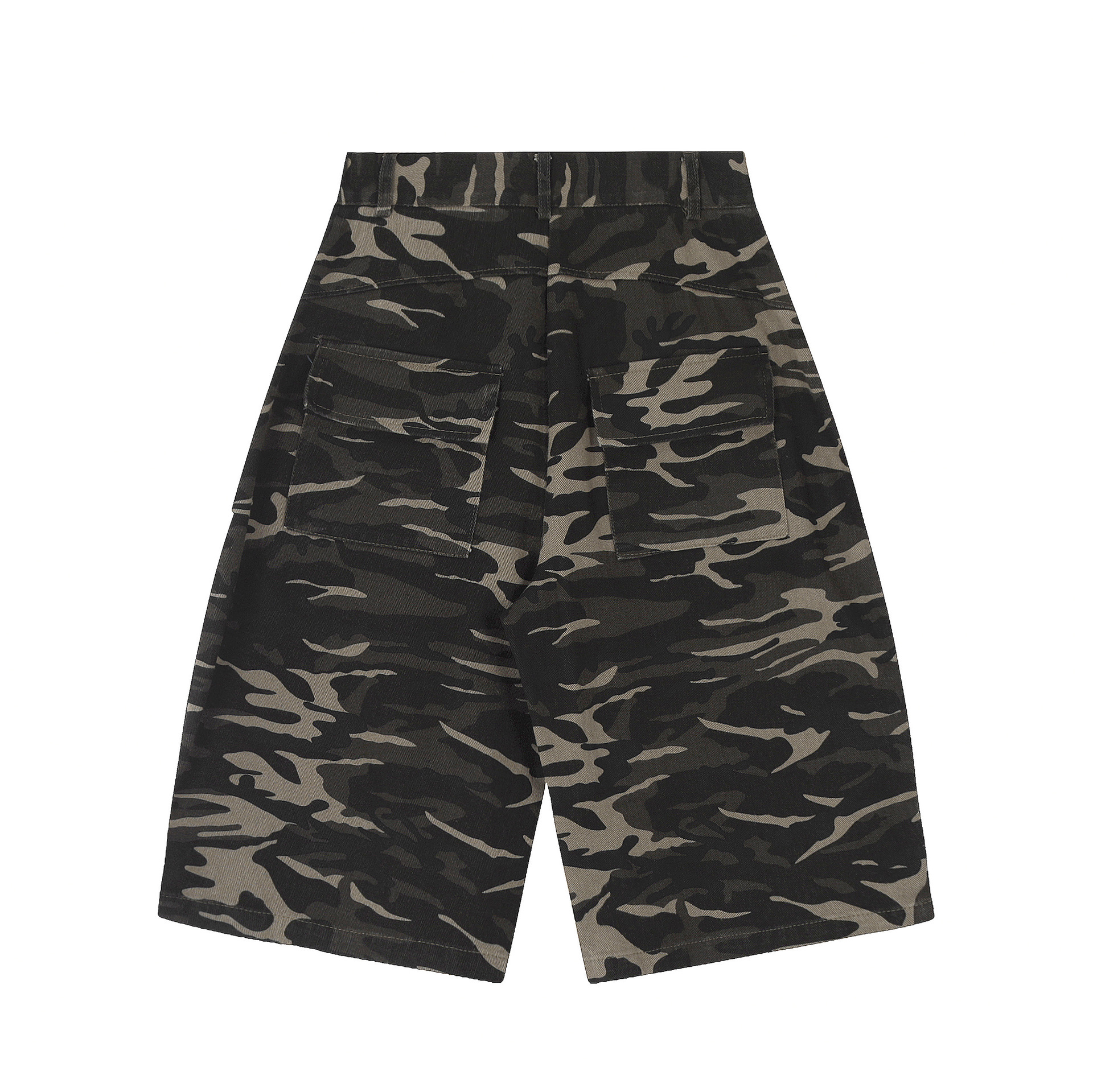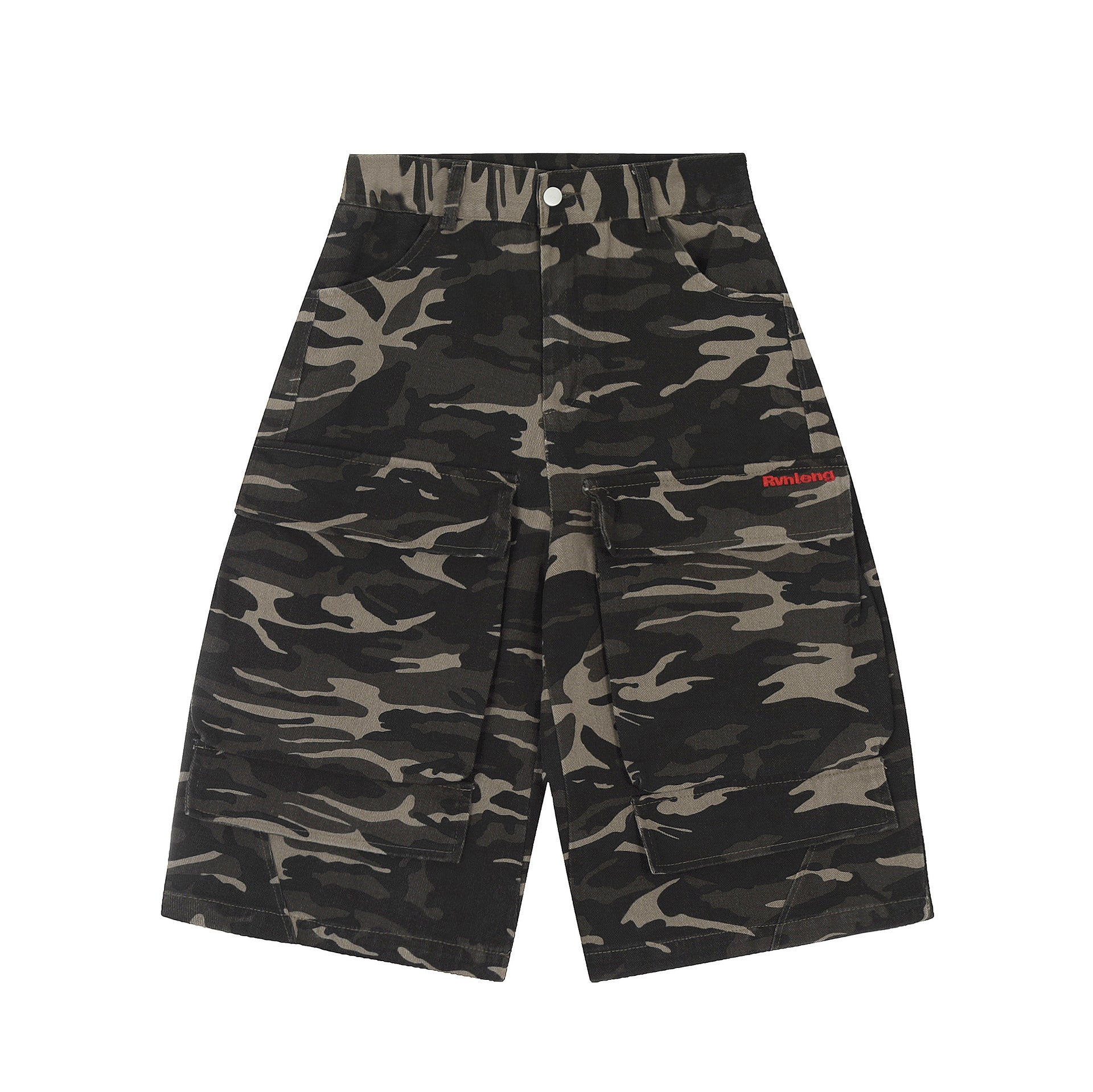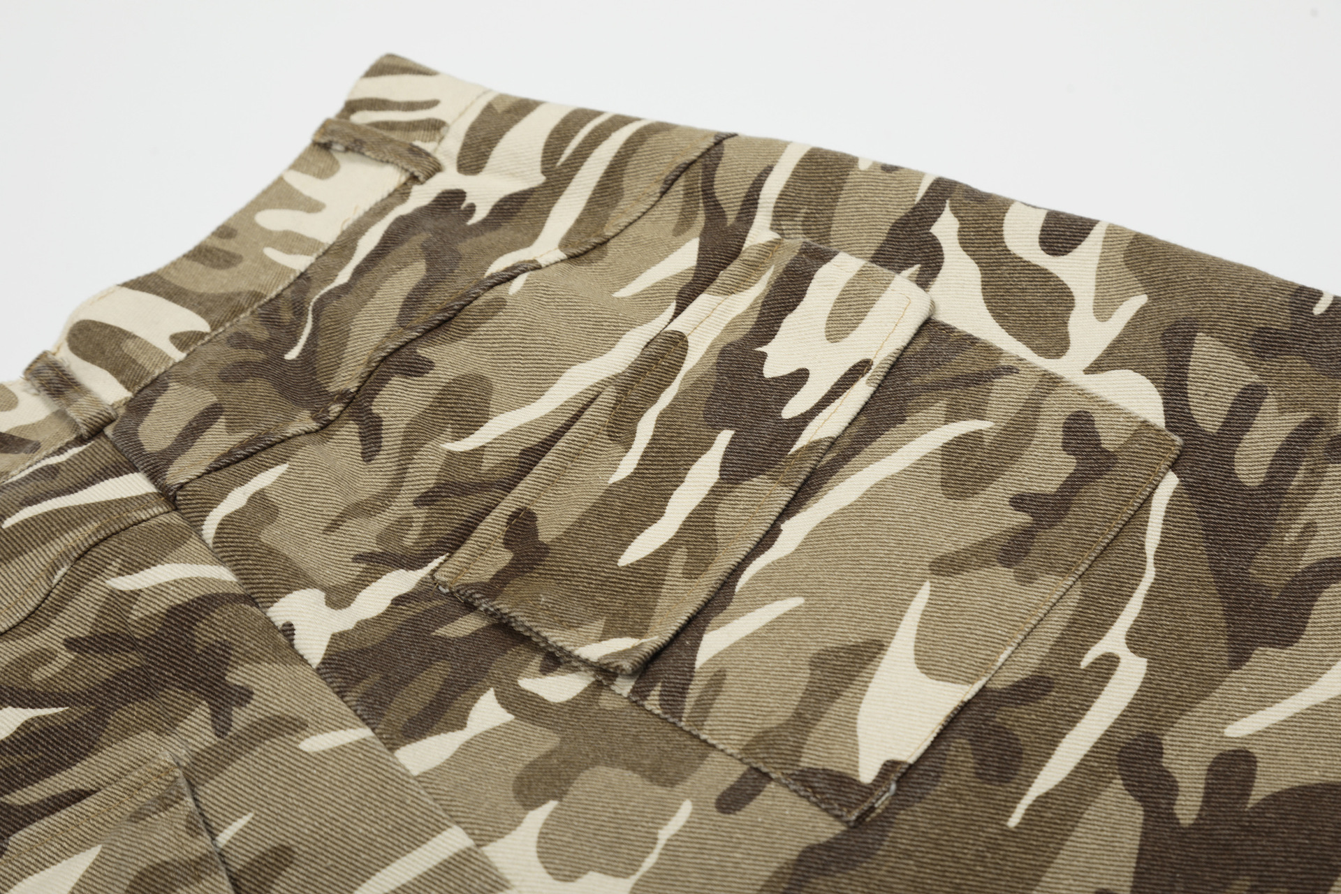 Retro Camouflage Multi-pocket Workwear Cropped Jeans Men And Women Wide