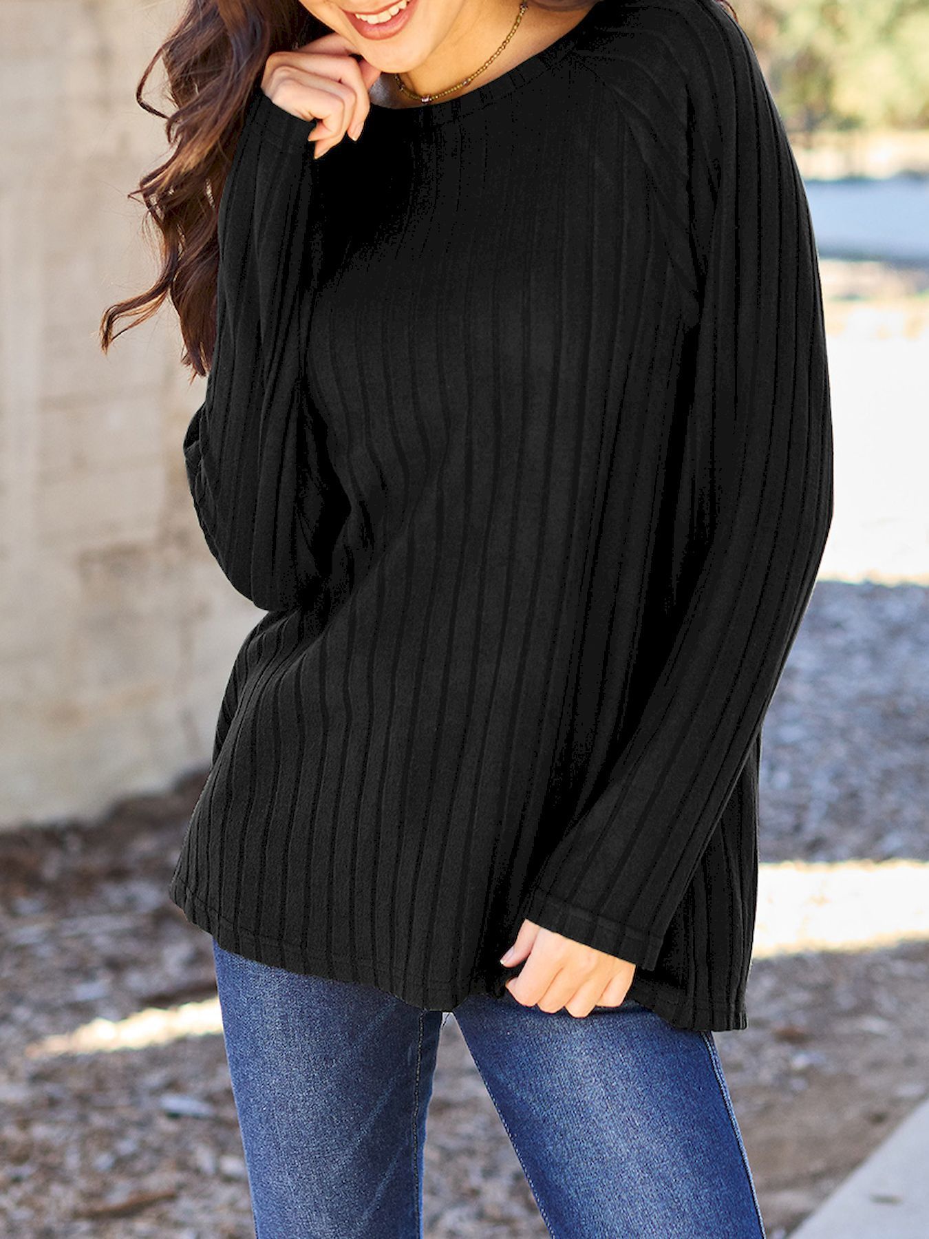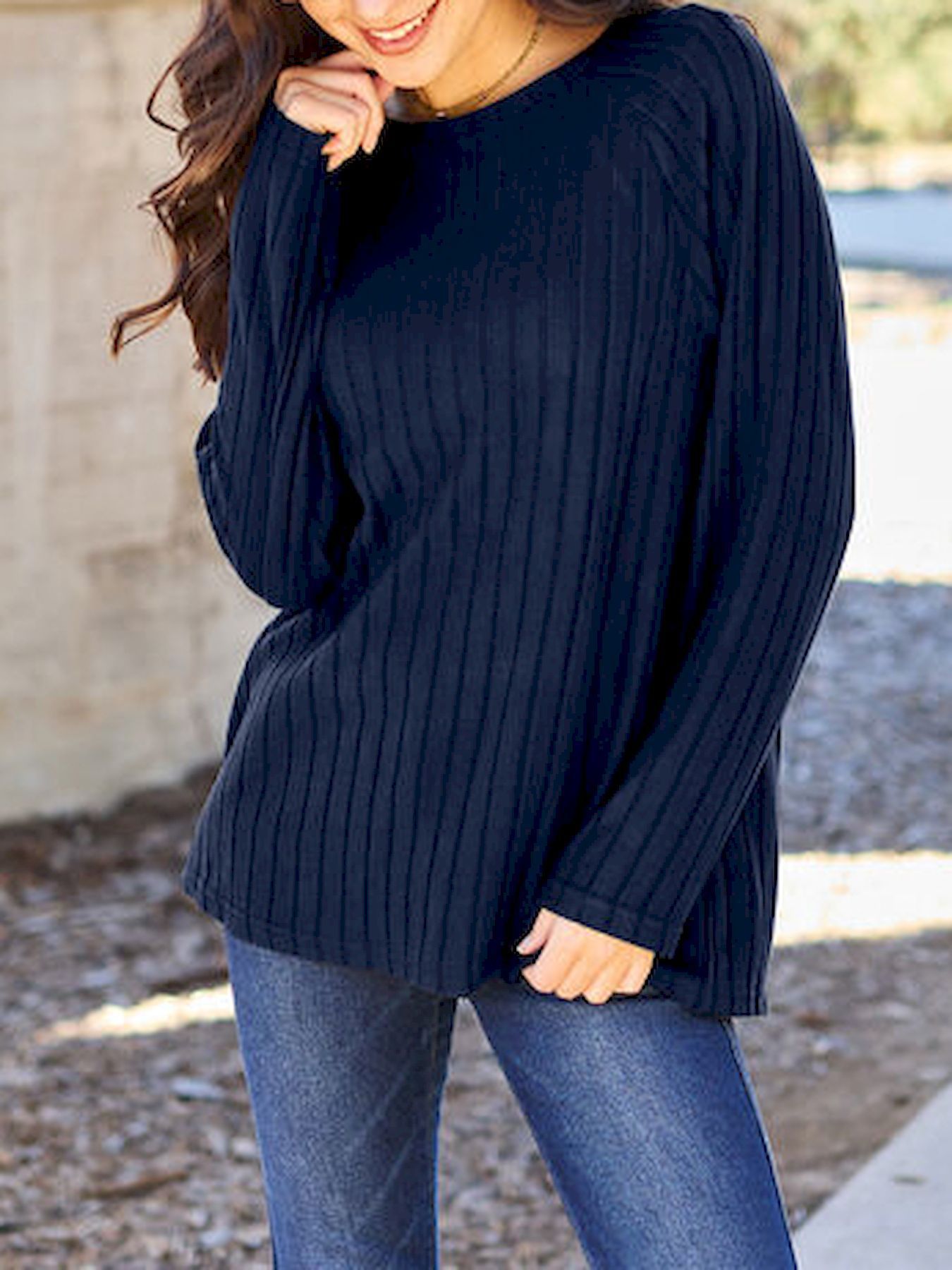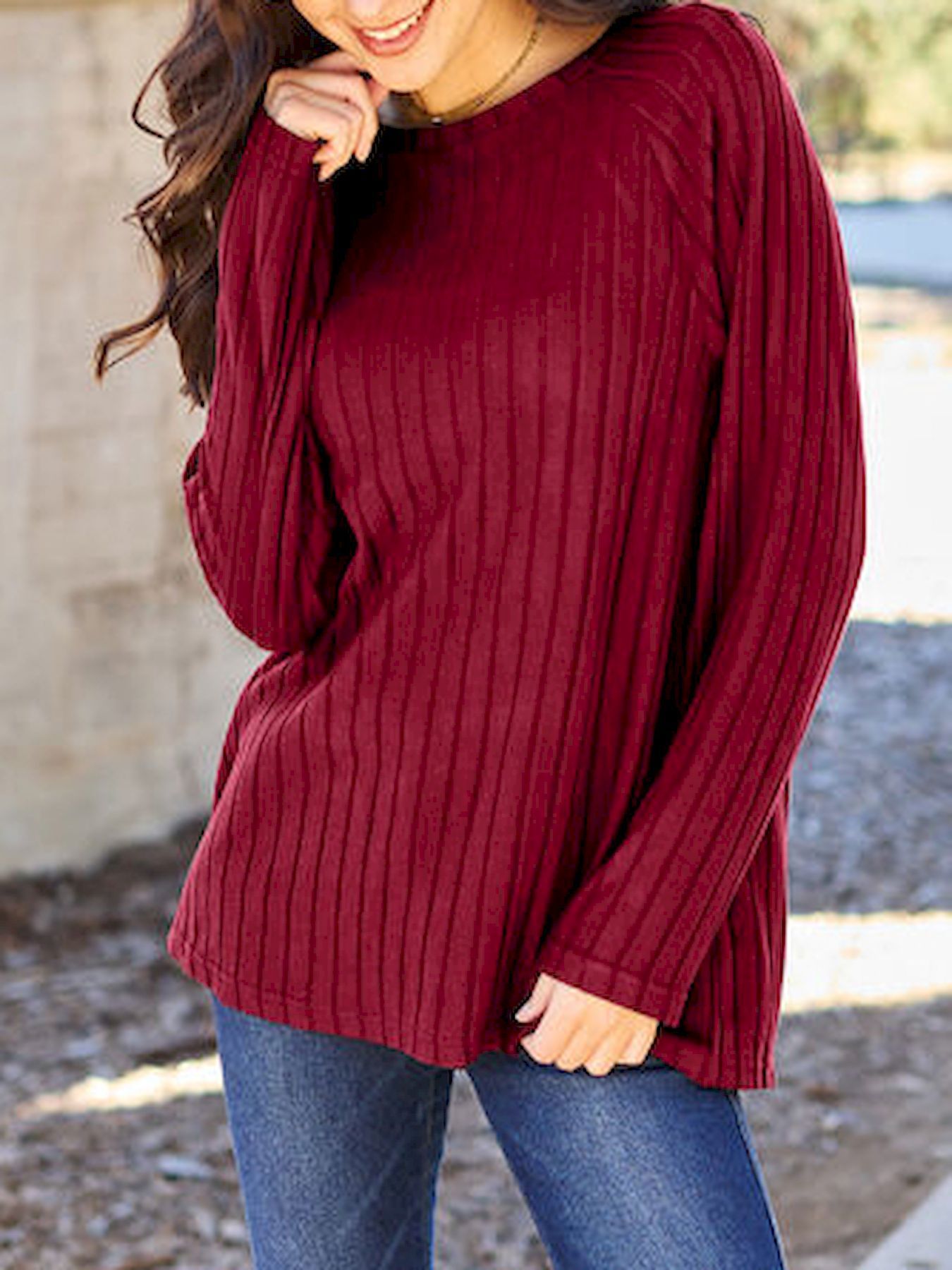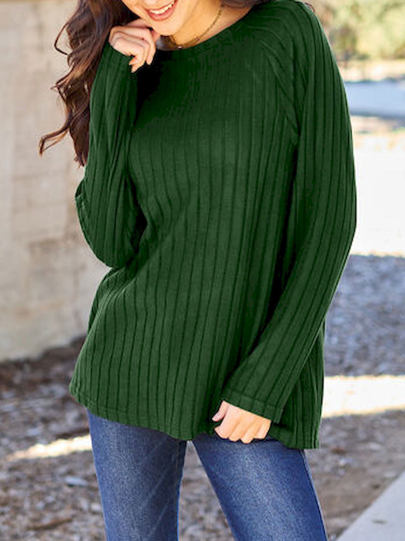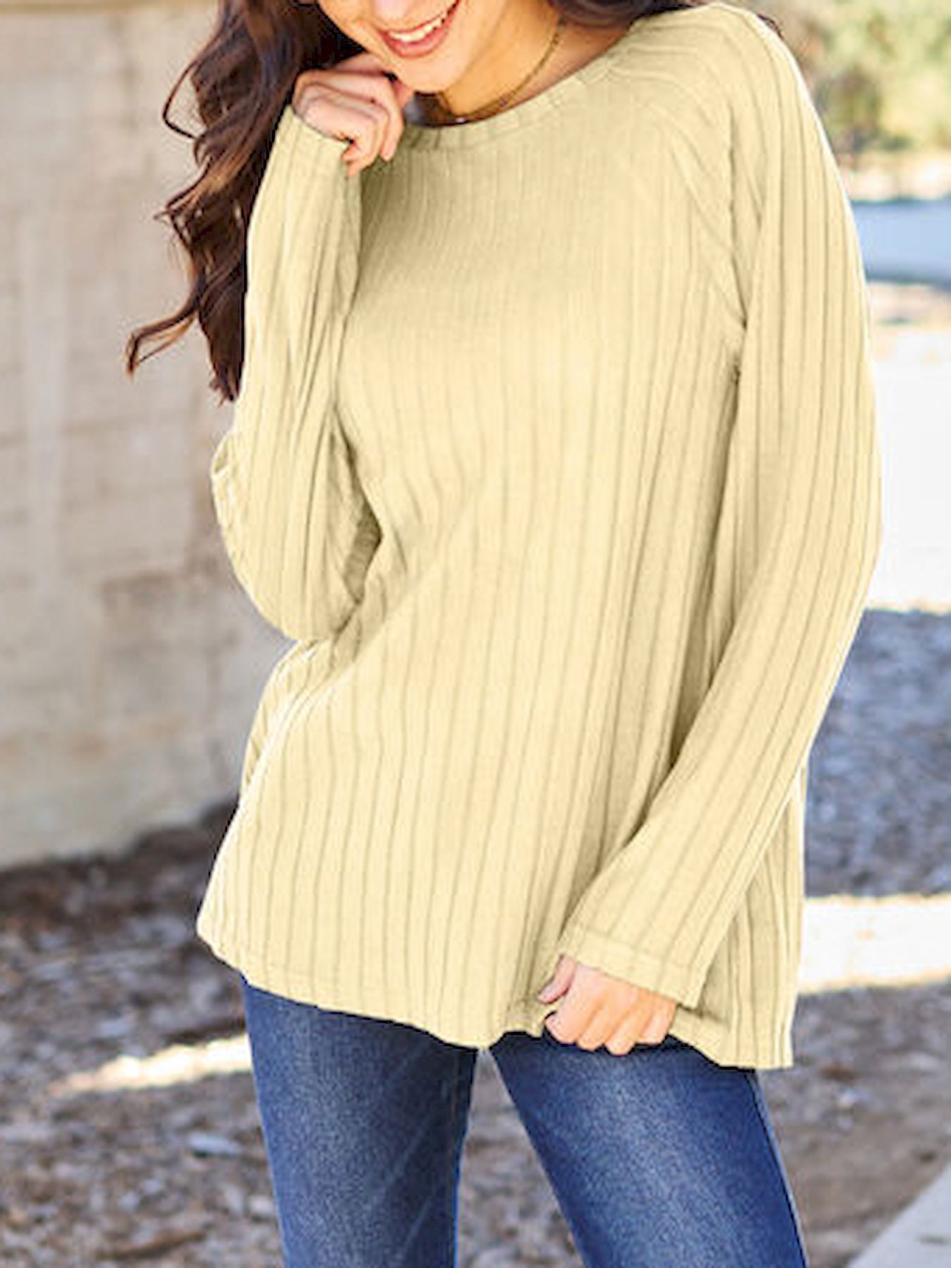 Rib Round-neck Long-sleeved Knitted Top Soft