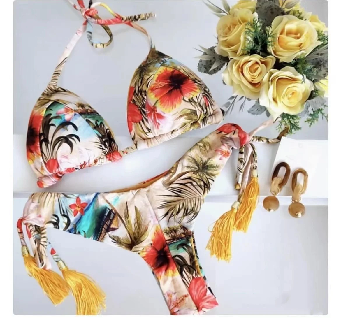 RUOTONSEPT New Sexy Botany Print Bikinis Set Women's Swimsuit Two-piece Triangle Halter Swimwear Bathing Suit Brazilian Biquinis