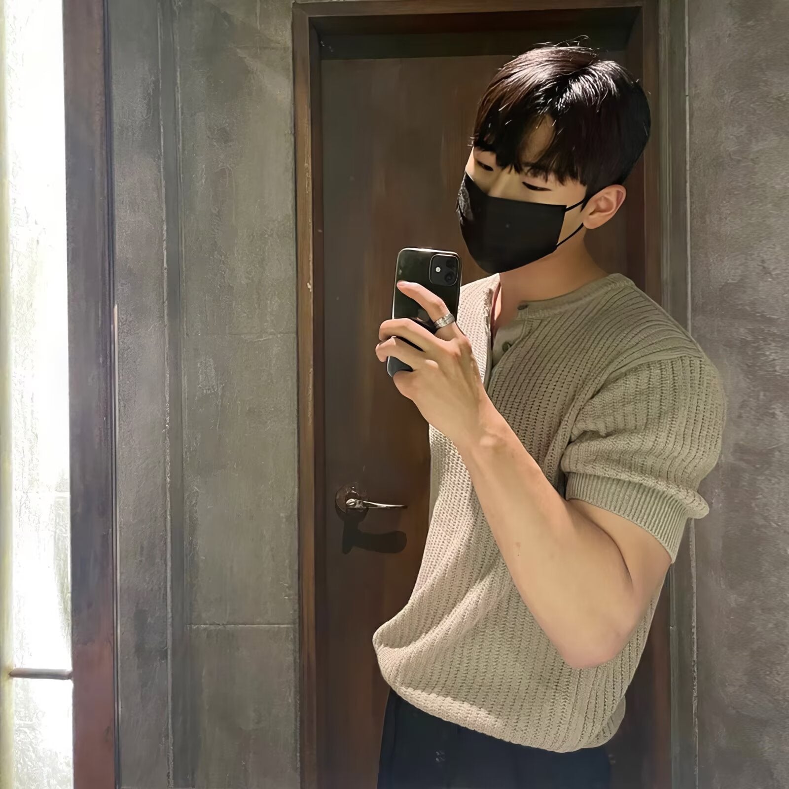 Short Sleeve Men's Vertical Stripes Ice Silk Breathable Slim Fit
