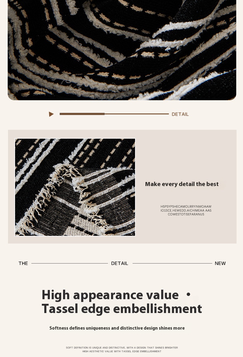 Color: black thread, beige thread, lines on green background thread, dark gray thread, brown thread