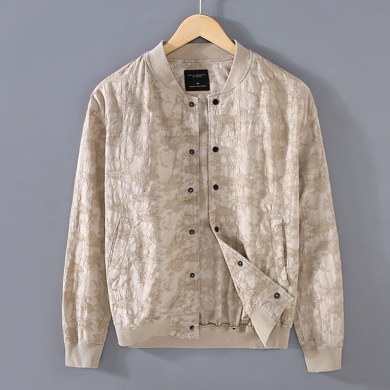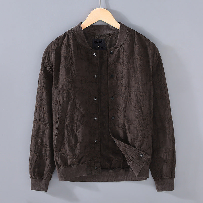 Spring And Summer New Men's Youth Linen Cotton Yarn-dyed Jacquard Casual Jacket