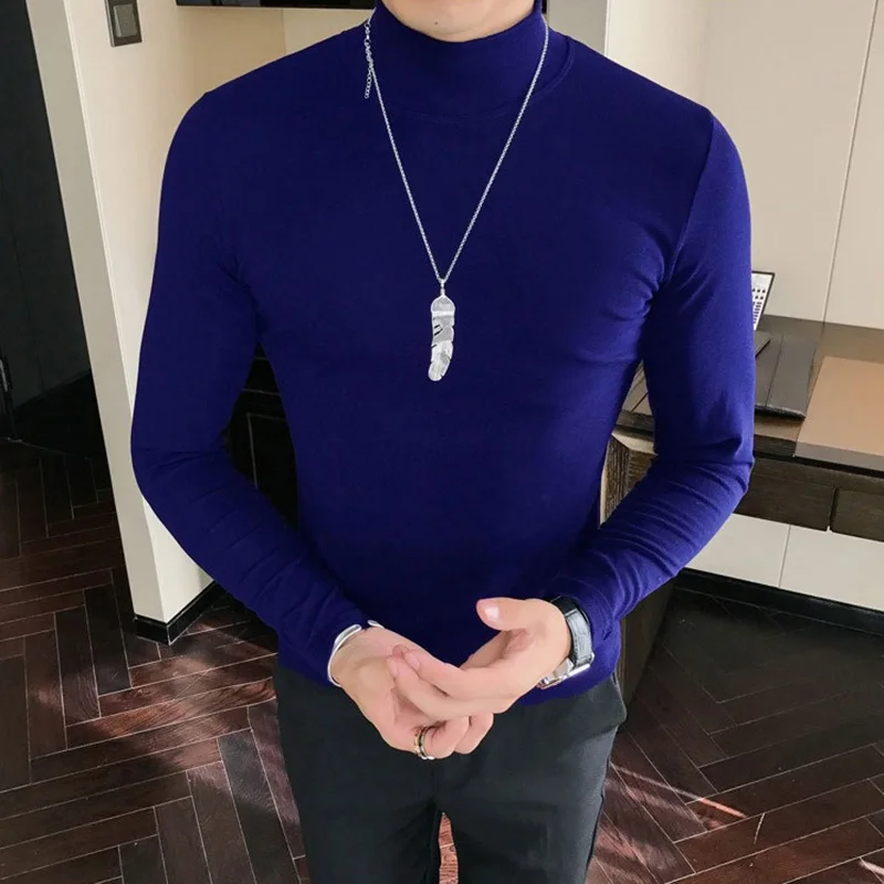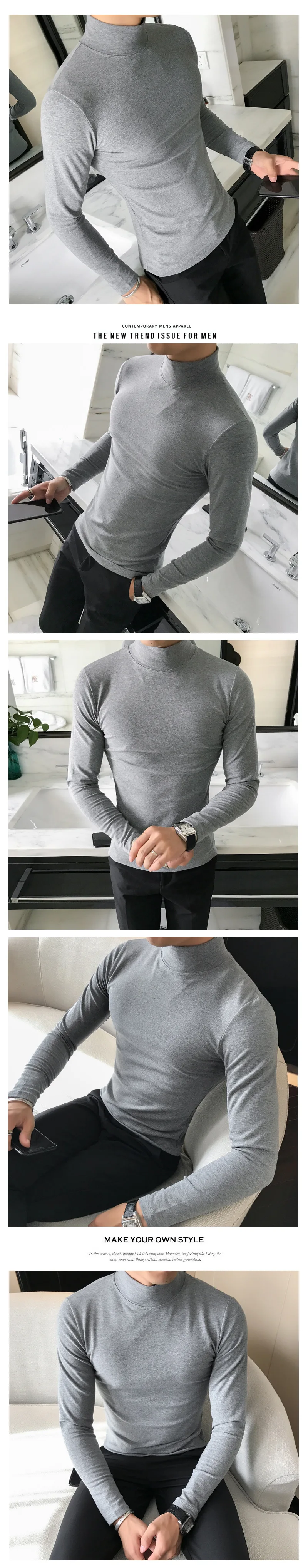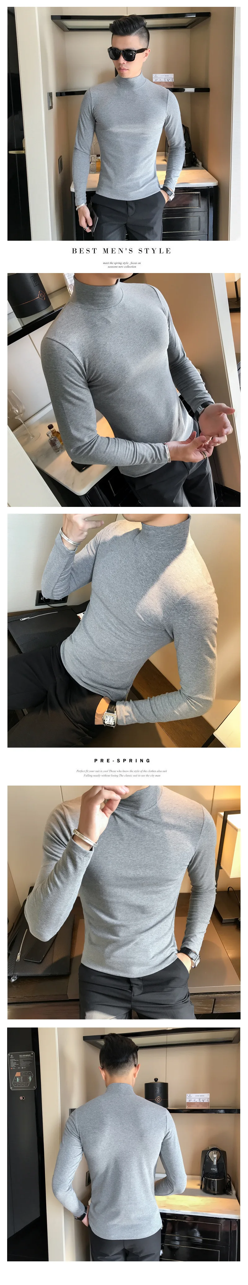 Spring New Men's Turtleneck T-shirt Long Sleeve Slim Fit Solid Color High Elastic Bottoming Pullovers Basic Style Male Tops