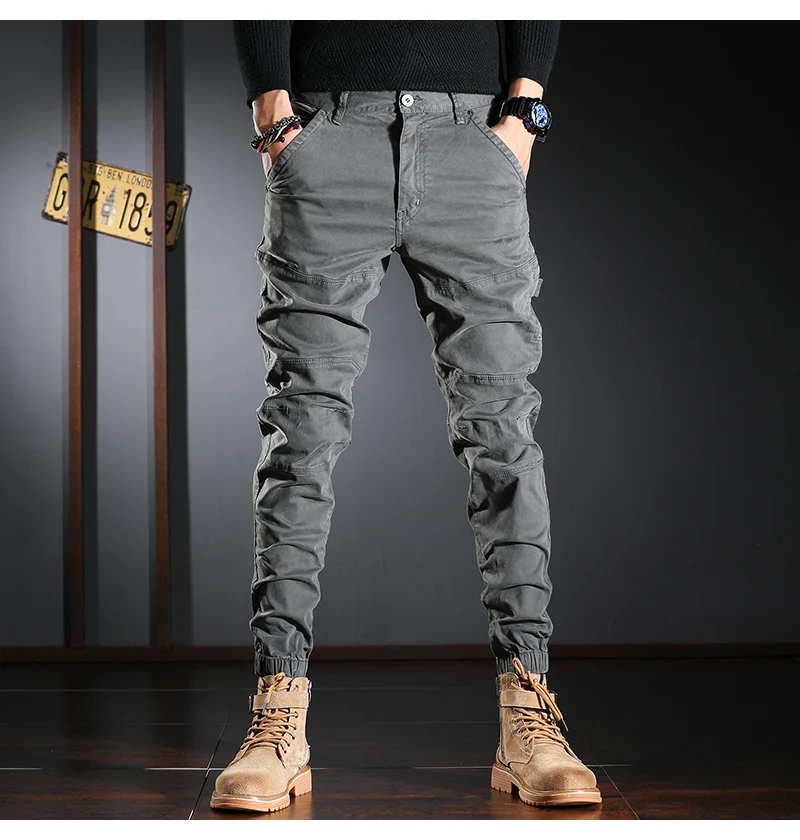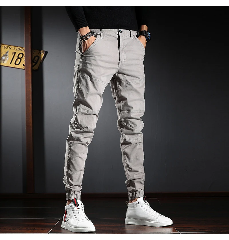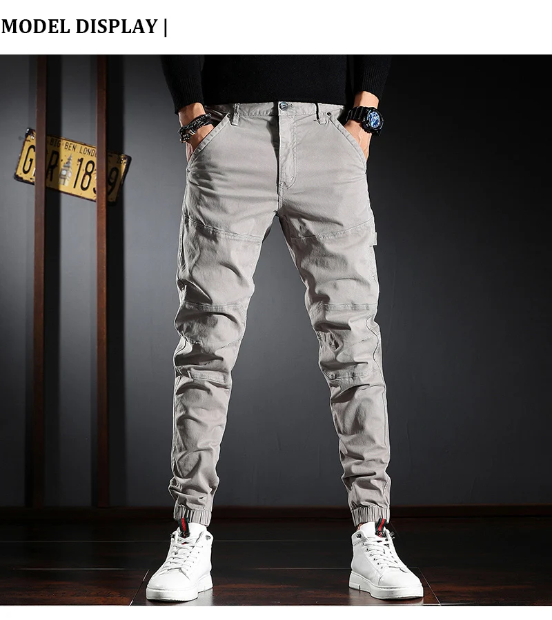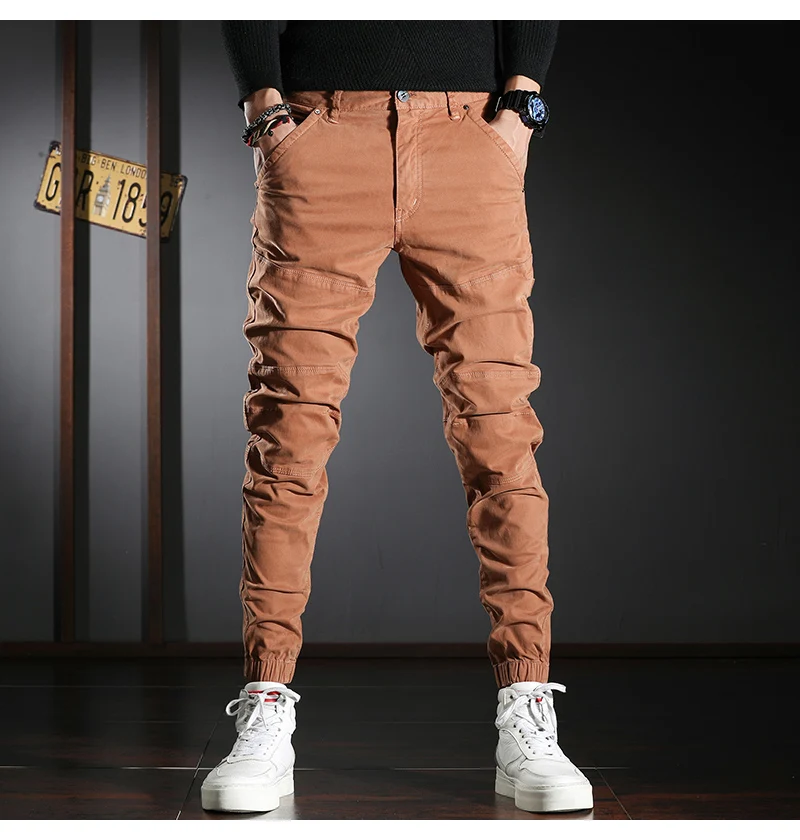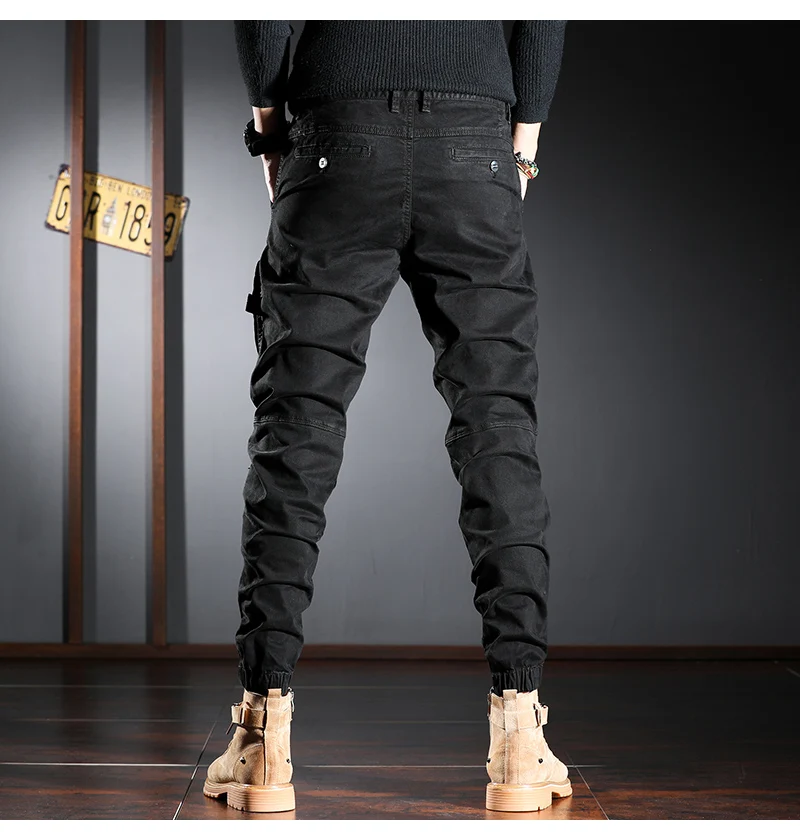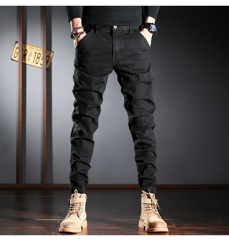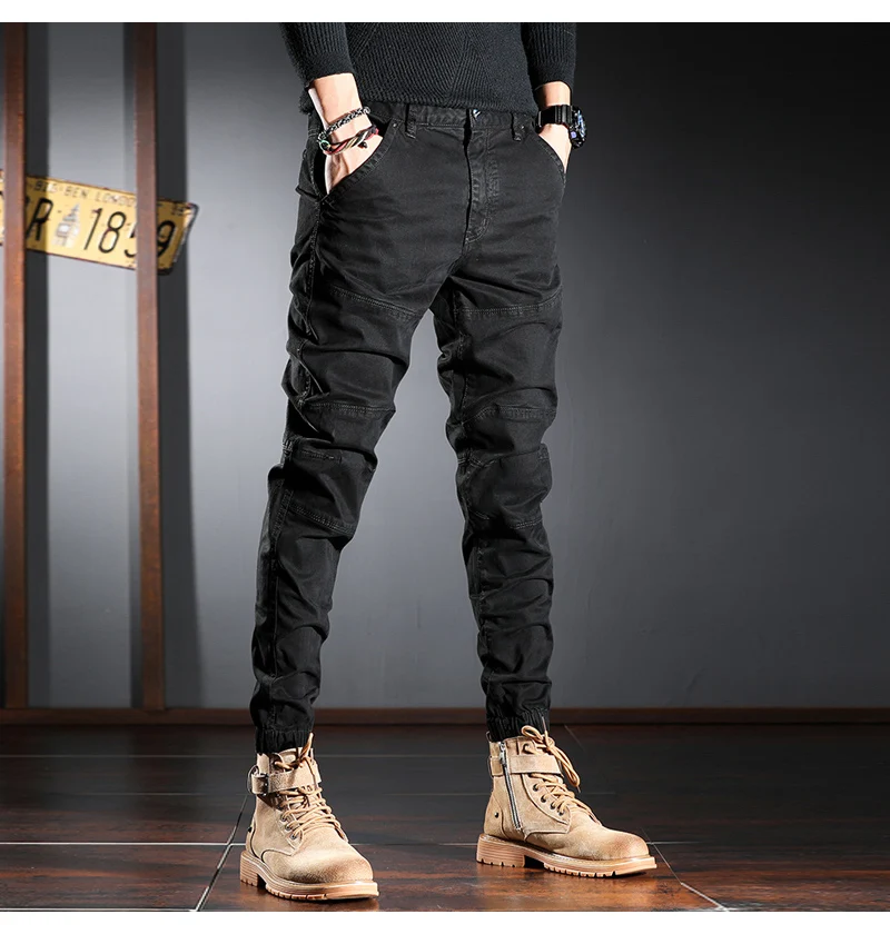 Streetwear Fashion Men Jeans Elastic Stretch Slim Fit Spliced Designer Casual Cargo Pants Hombre Hip Hop Joggers Men Overalls