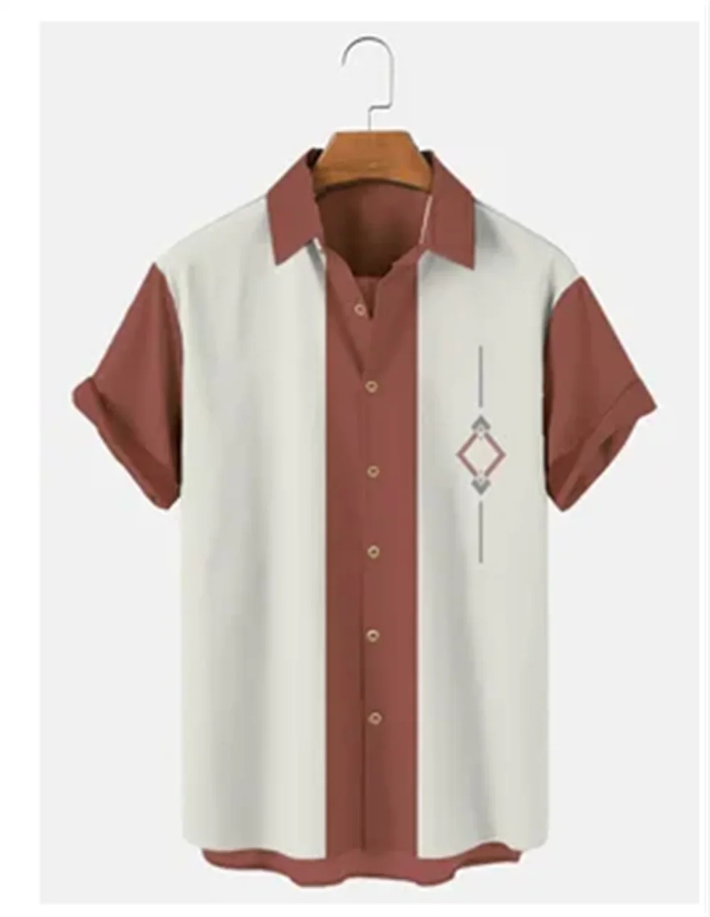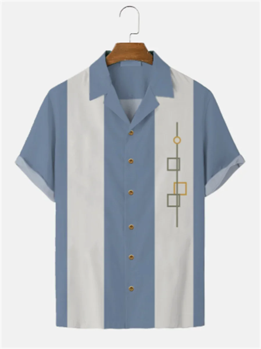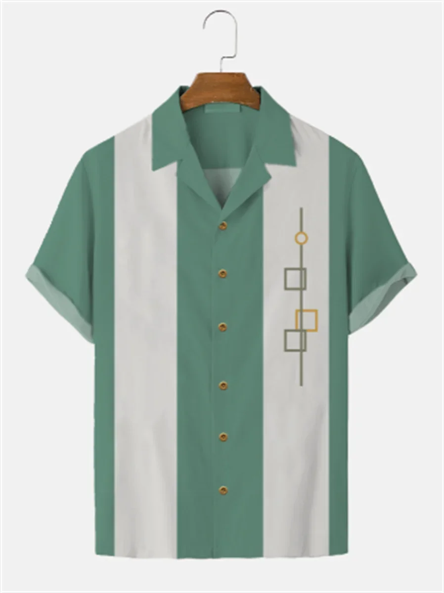 Stripes Simple Casual Dress Shirts European Size Men's Hawaiian Fashion Short Sleeve Loose Breathable Top Button Summer