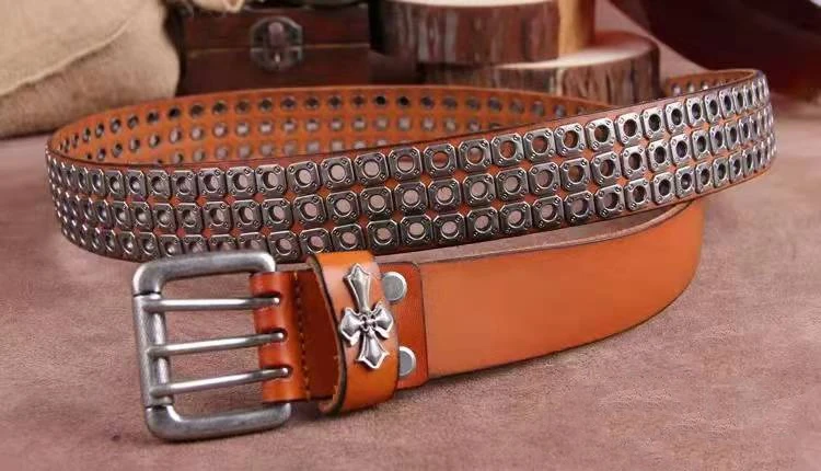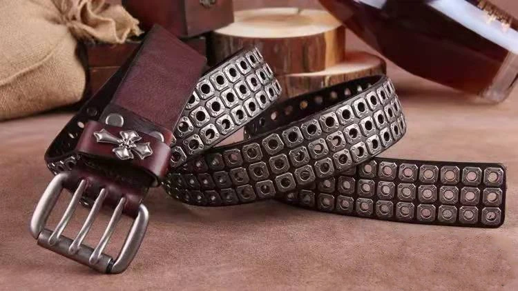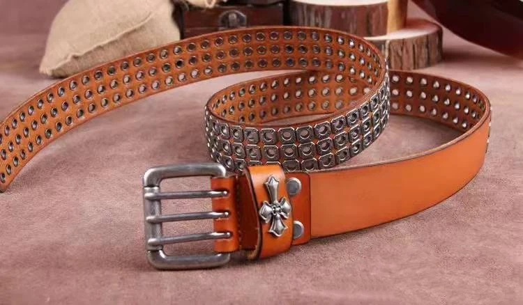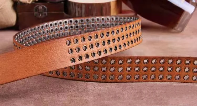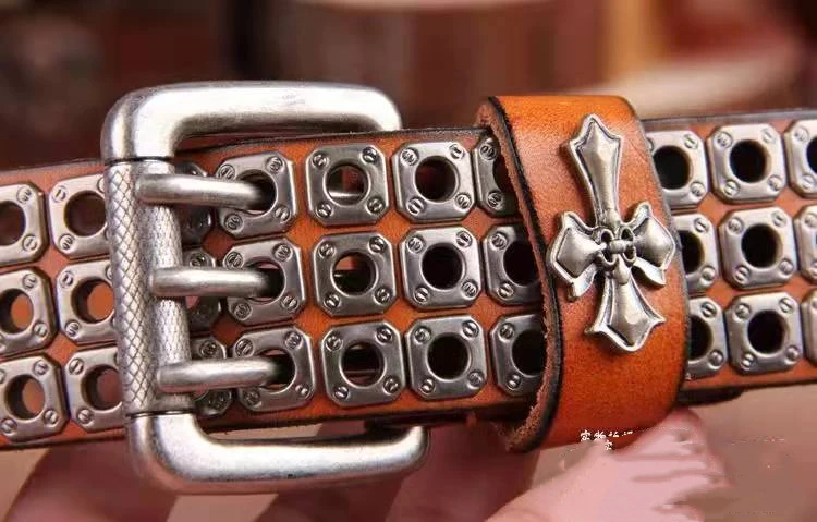 Studded Heavy Metal Style Belt Handmade Leather Pank Rock Style Men's Belt Cowhide Retro Tactical belt Jeans Belt