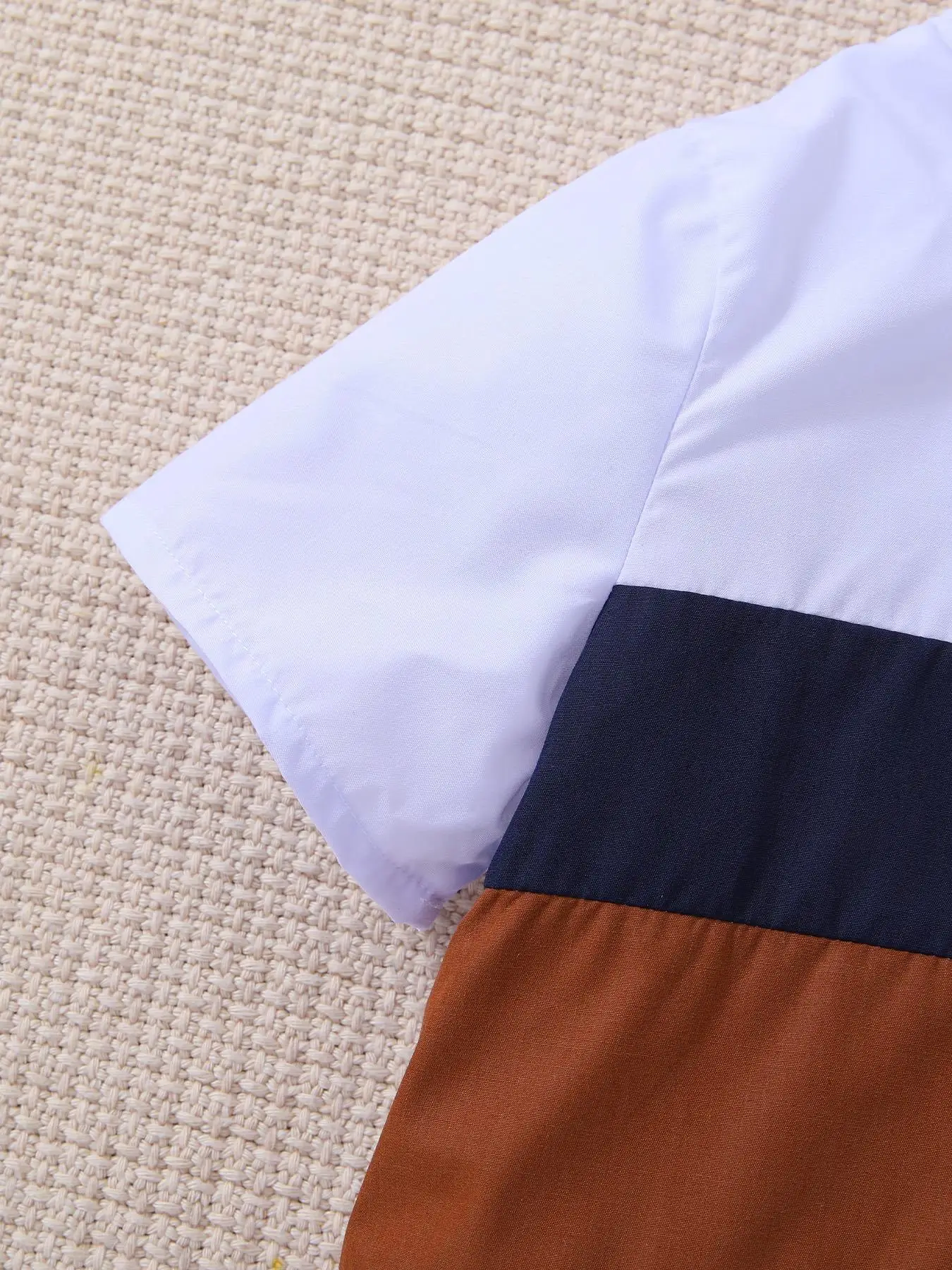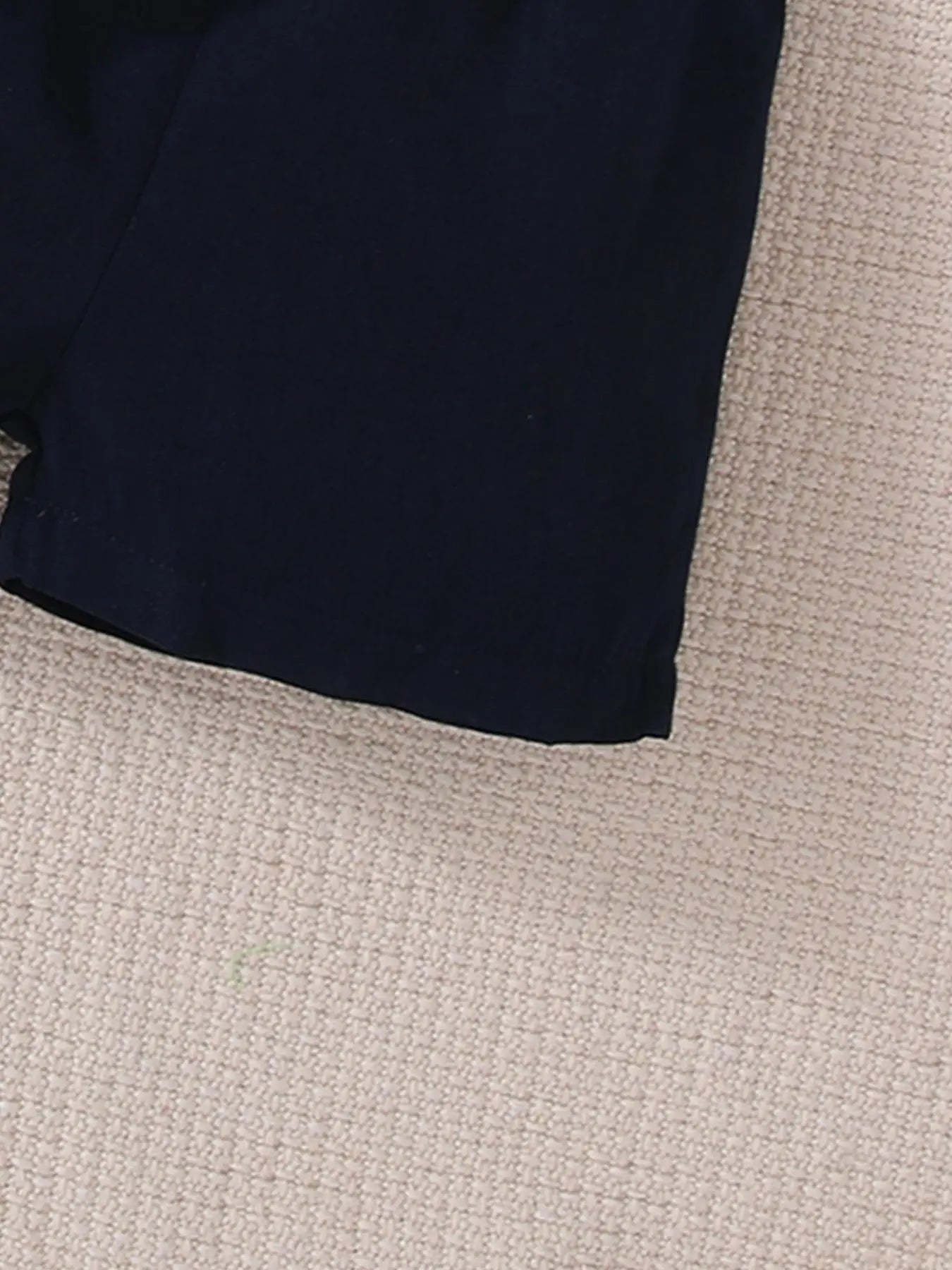 Summer Boys Front Button Cardigan Stand Collar Cartoon Printed Short Sleeve Shorts Casual Two-Piece Set