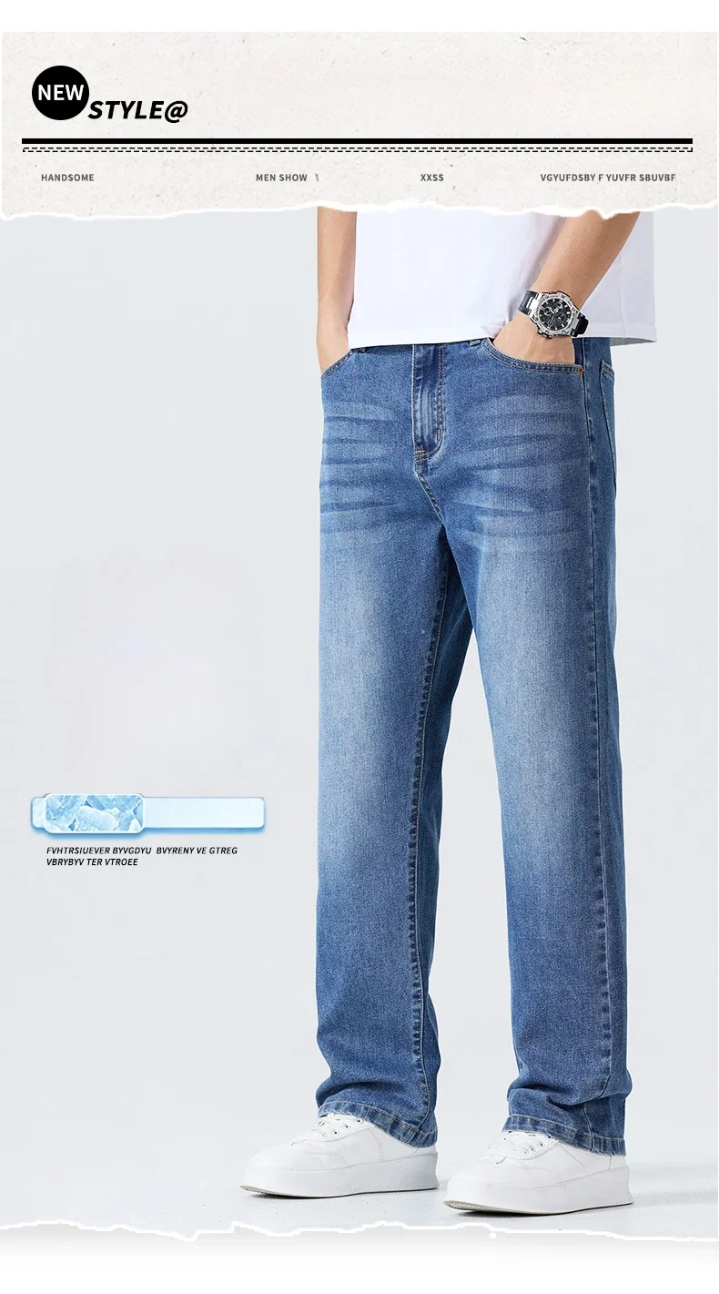 Summer New Casual Men's Ultrathin Jeans Business Breathable Brand Trousers Comfortable Straight Loose Male Denim Pants