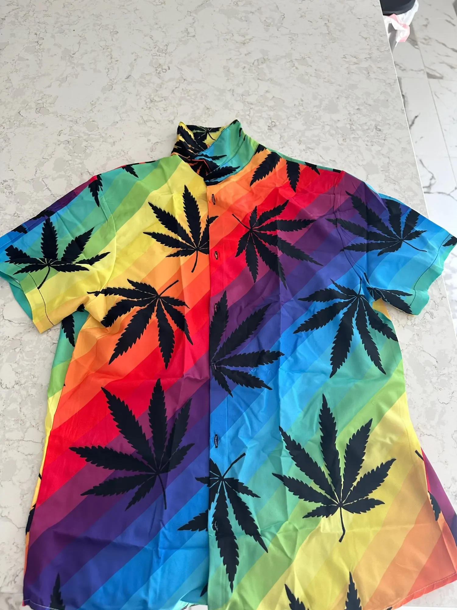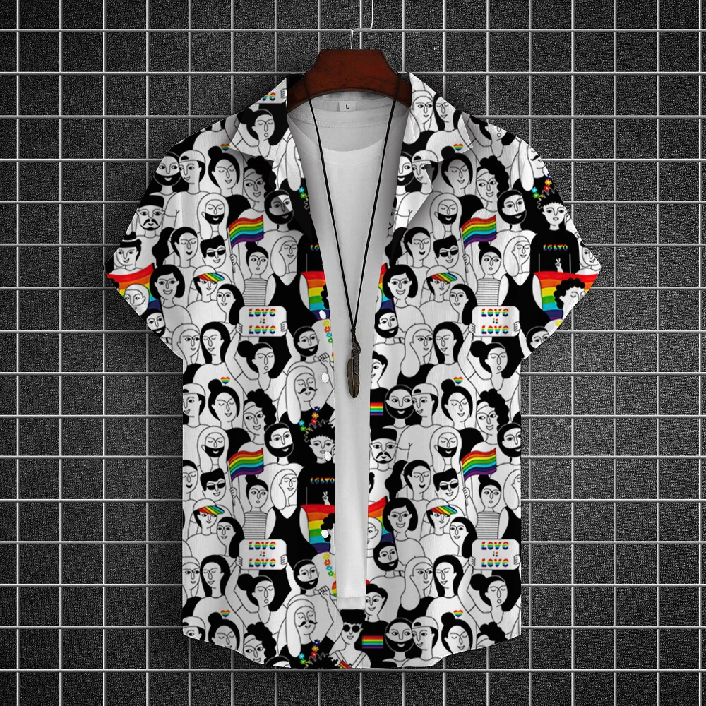 Summer Oversized Romantic Men'S Shirt Rainbow Pattern Fashion Short Sleeve Print Top Simple High Quality Street Loose Hawaiian