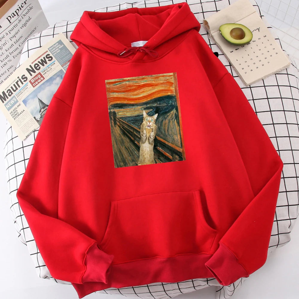 The Scream Art Retort Cat Printed Men's Hoodies Simple Fleece Hoodie Street S-Xxl Hoody Casual Fashion Pullover Tops s