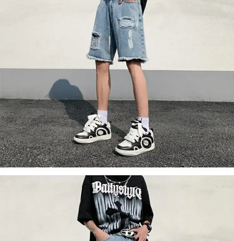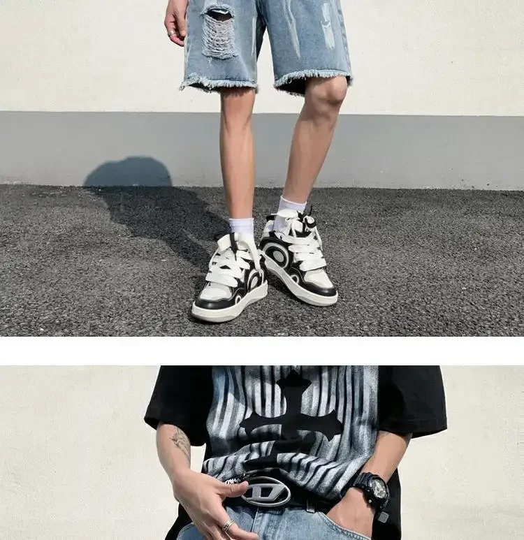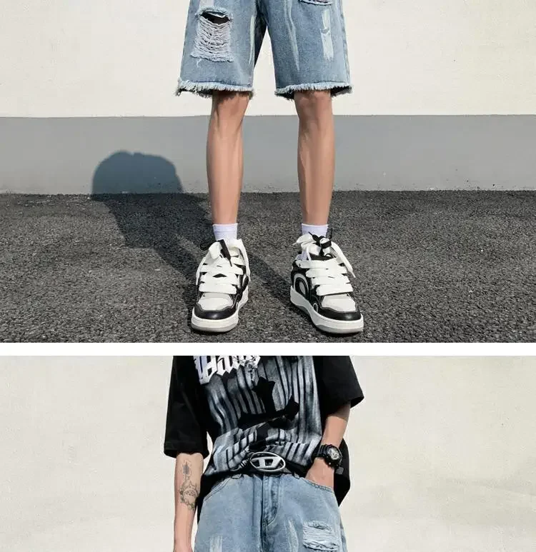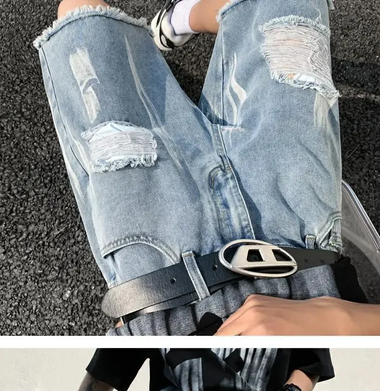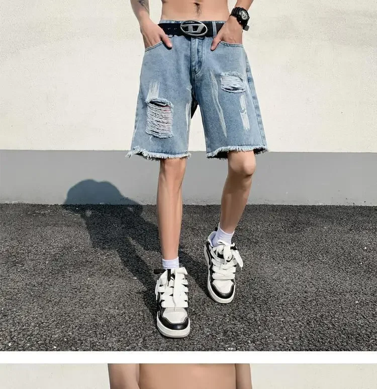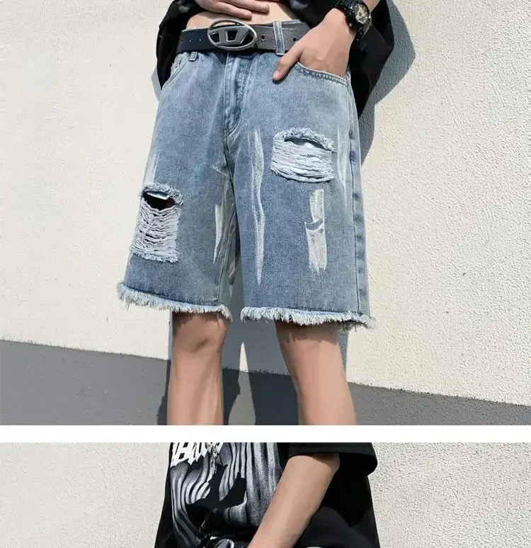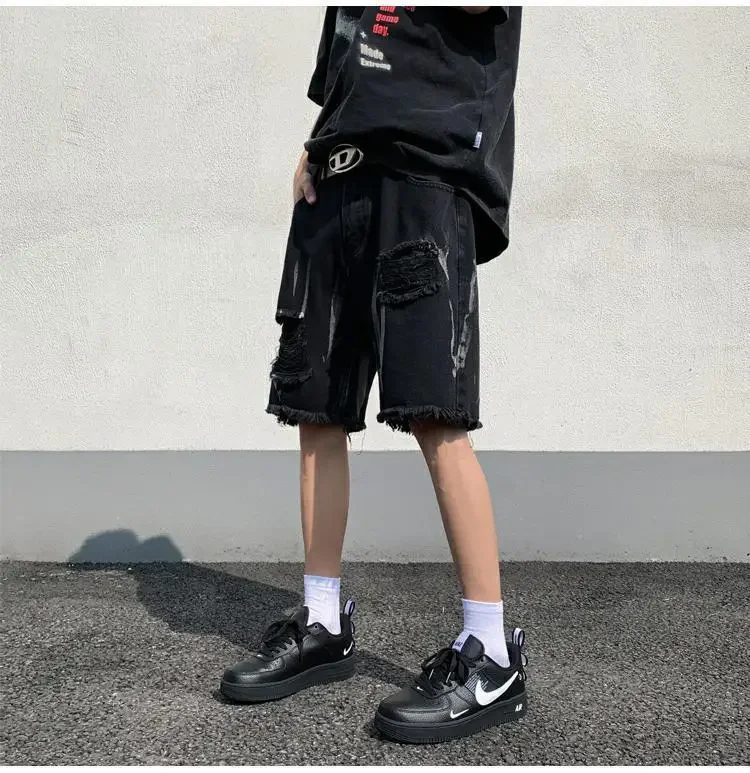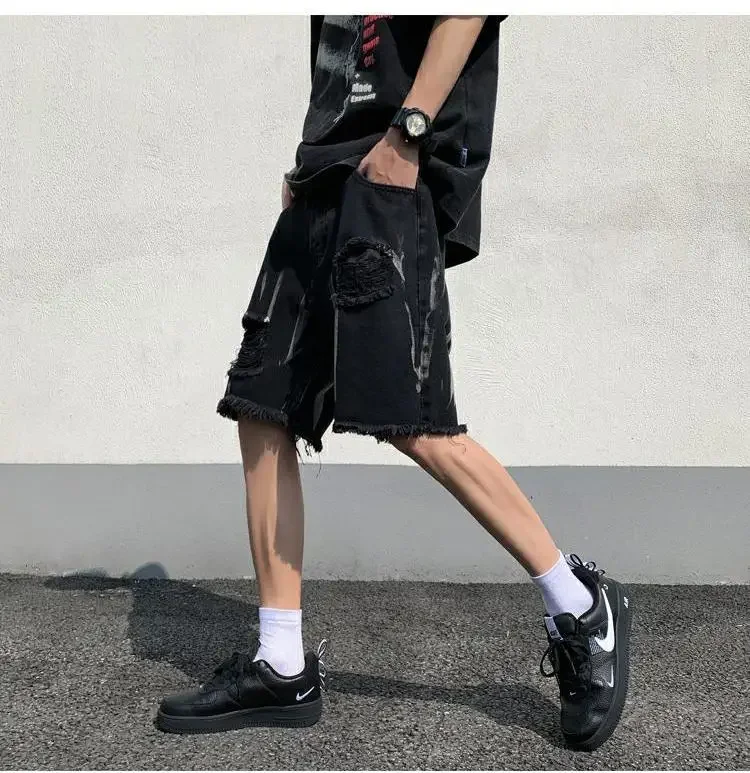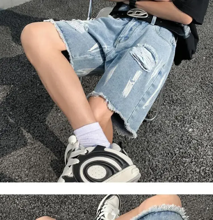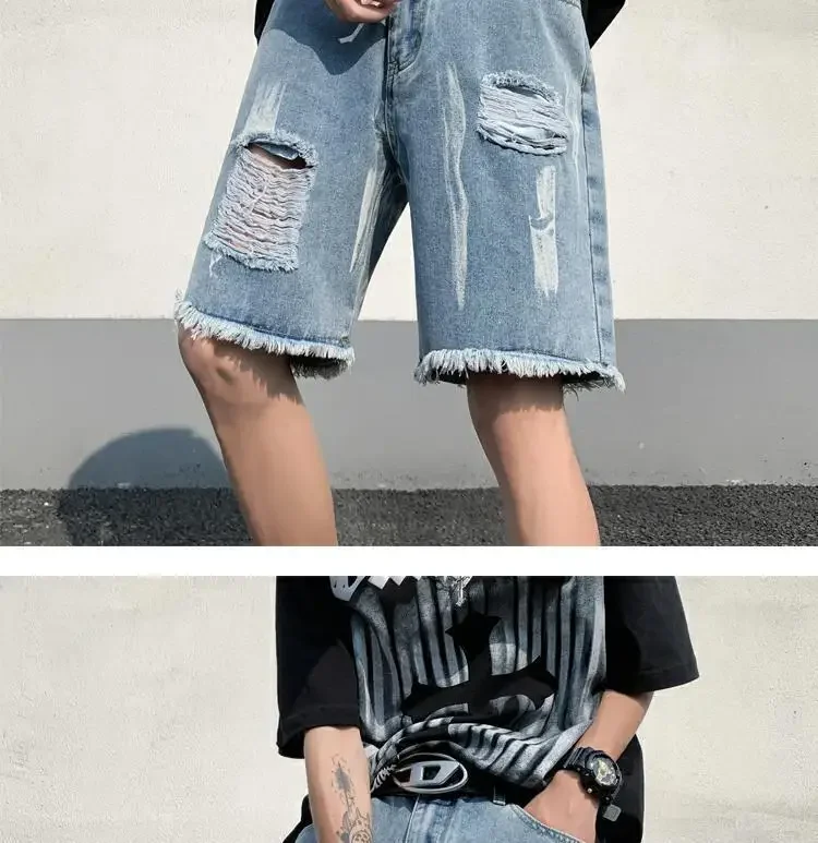 Tie-dye Furnished Denim Shorts Men's Ripped High Street Design Over-the-knee Five-point Pants