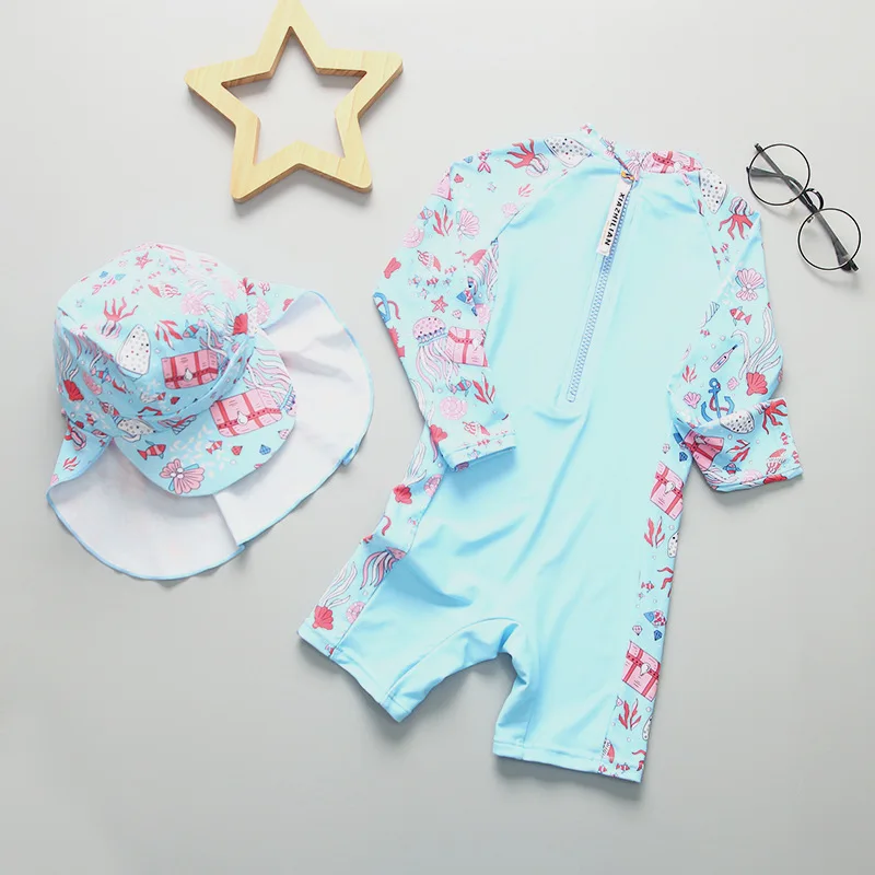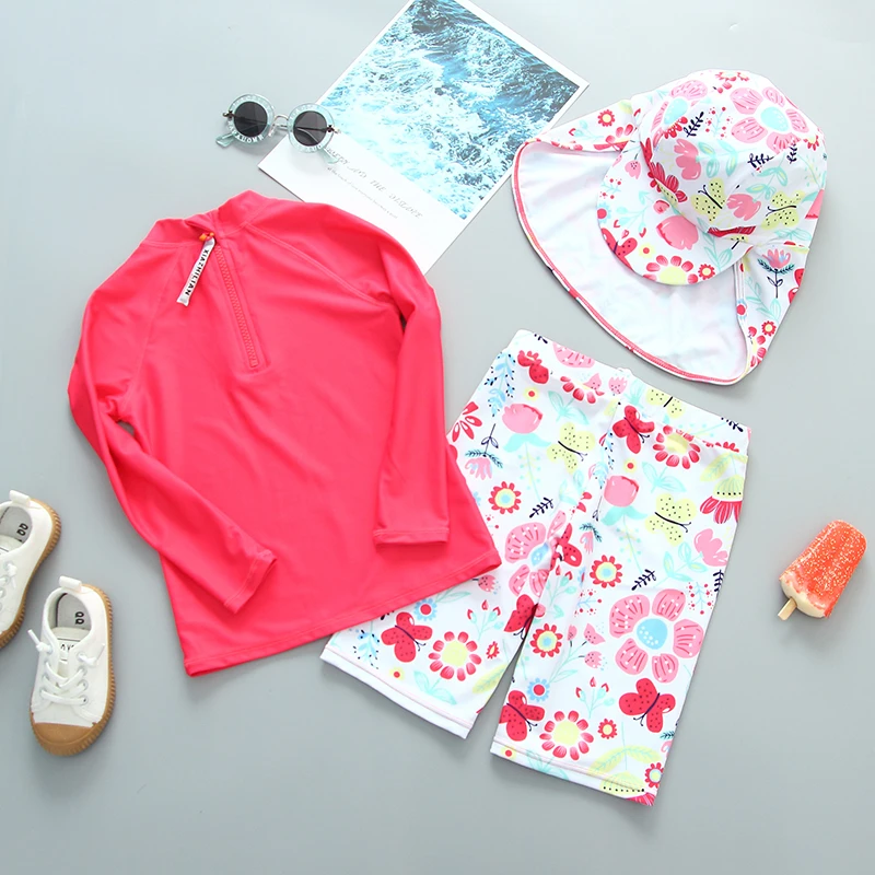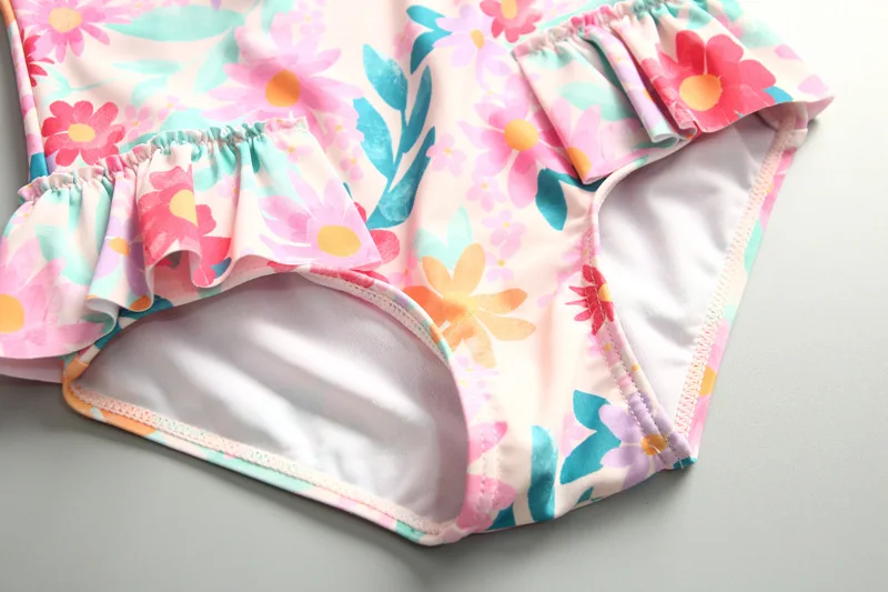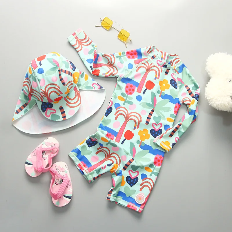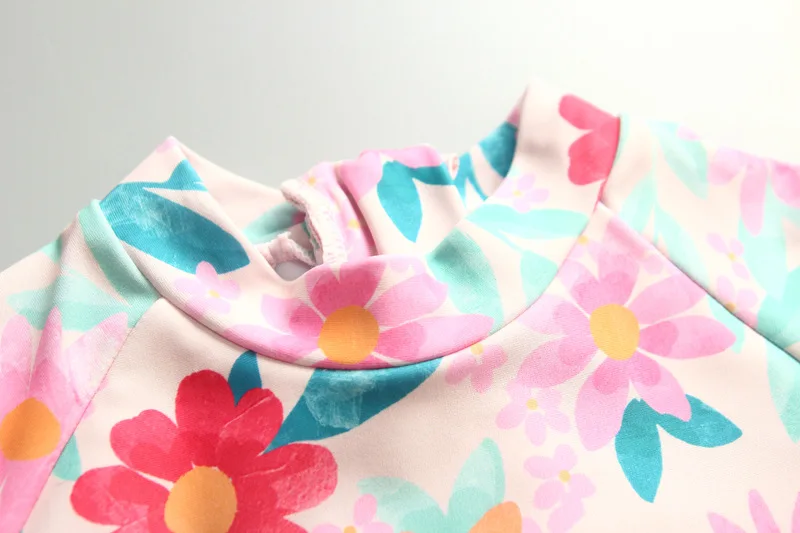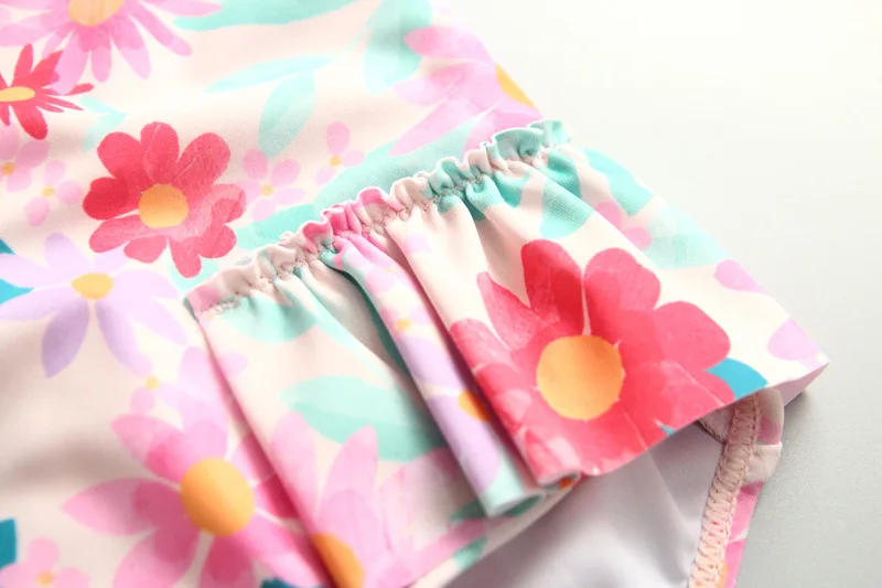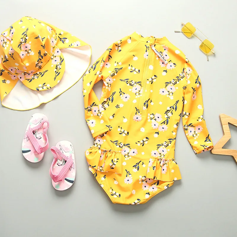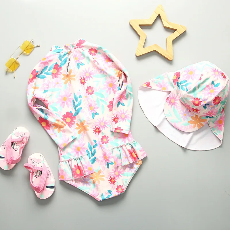 UPF50 Girls Swimwear Long Sleeves Floral Baby Swimsuit UV Protection Children's Swimming Suit Beach Summer Toddler Bathing Suit