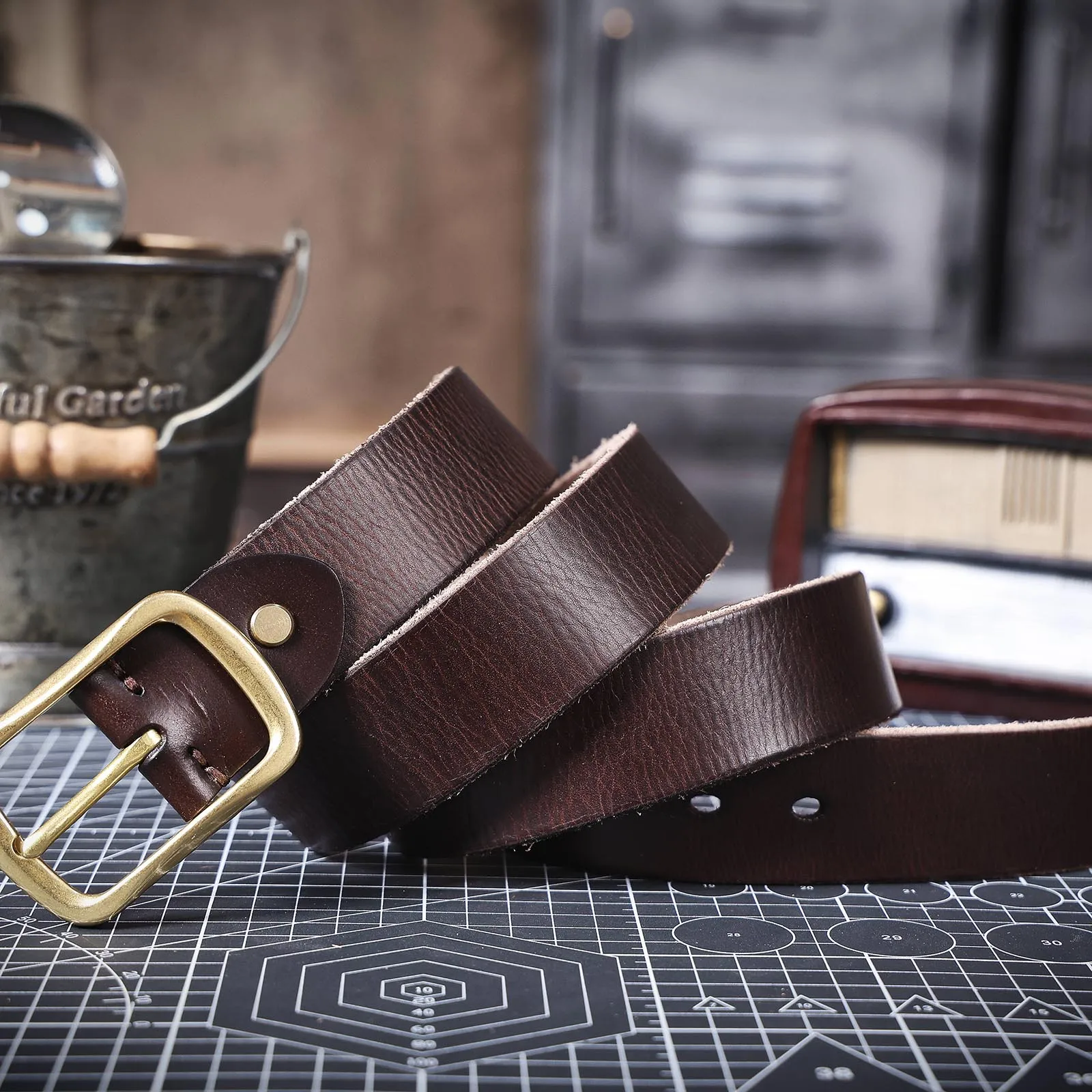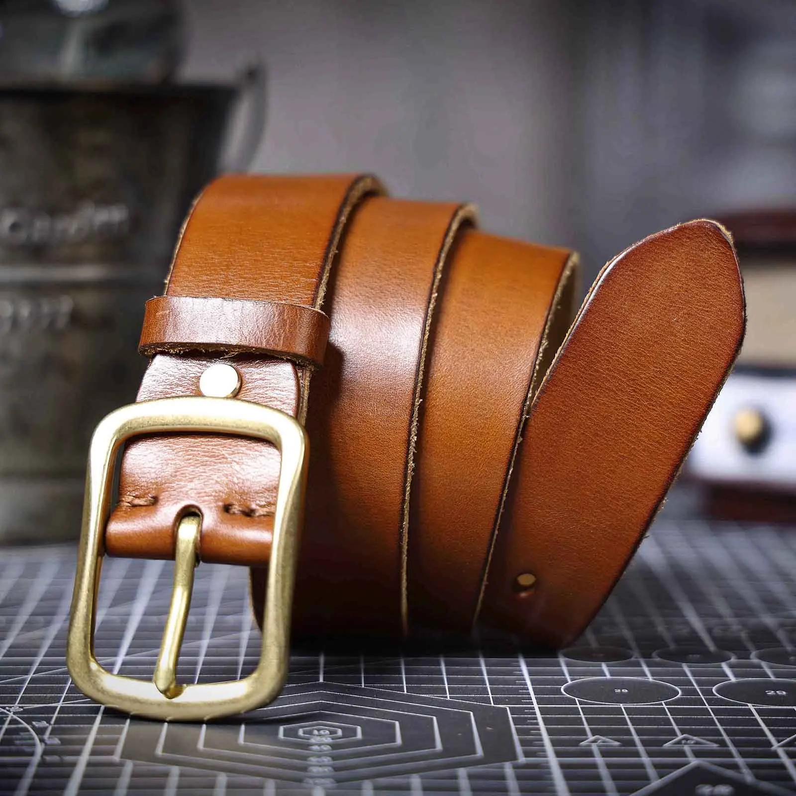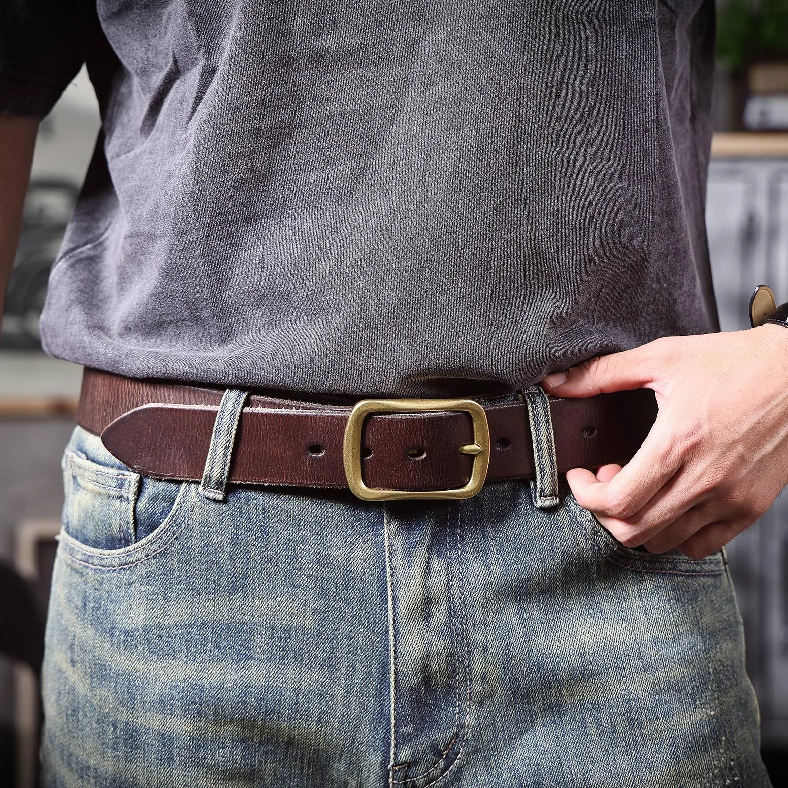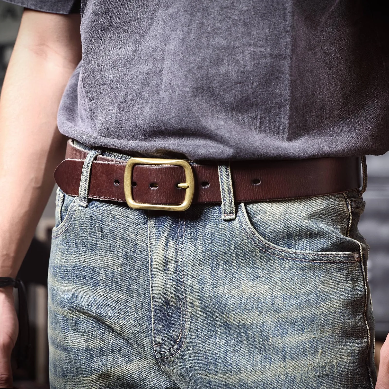 Vintage Genuine Leather Men's Belt With Copper Buckle, Handmade Casual Pin Buckle Belt With Gift Box, Thickened Top-layer Italia