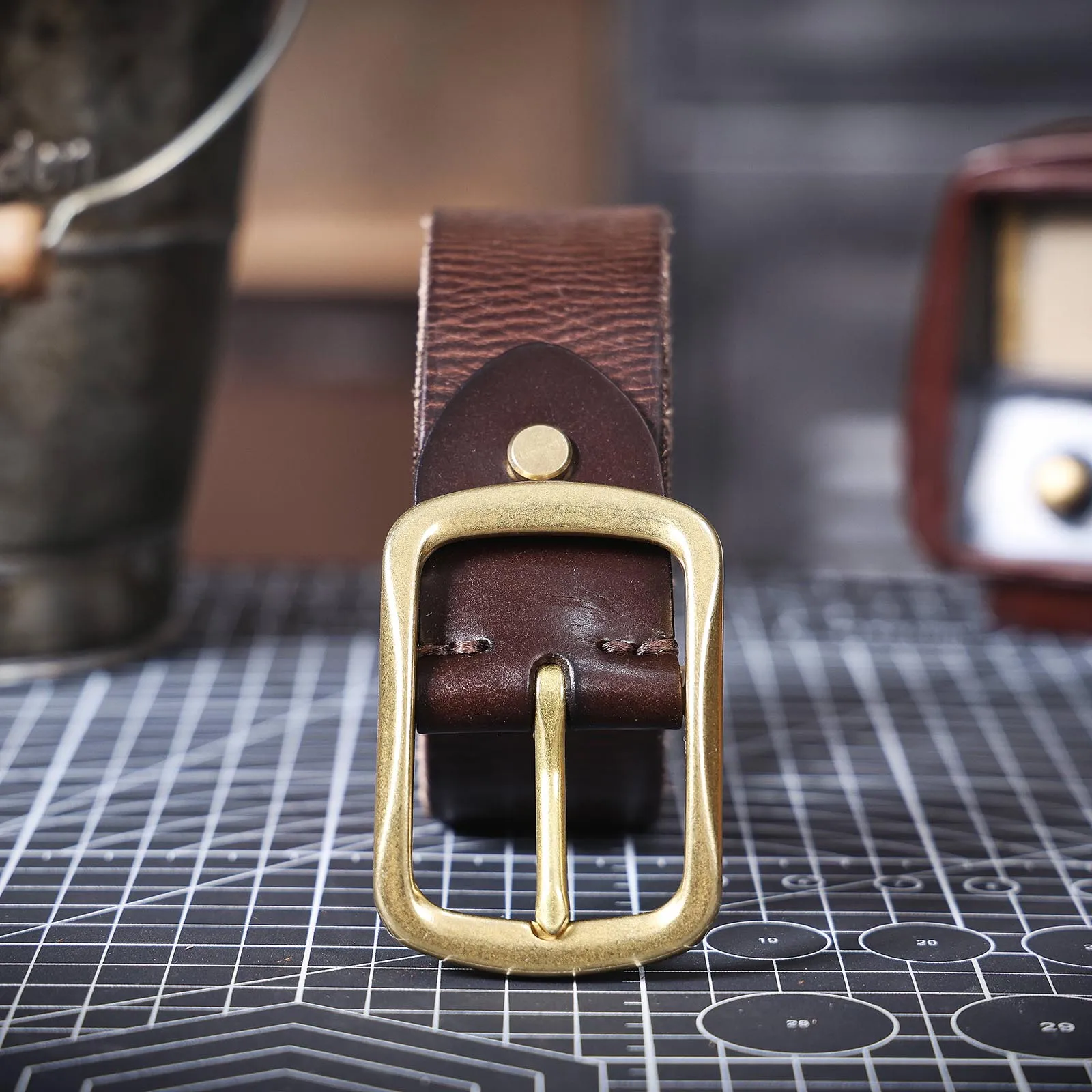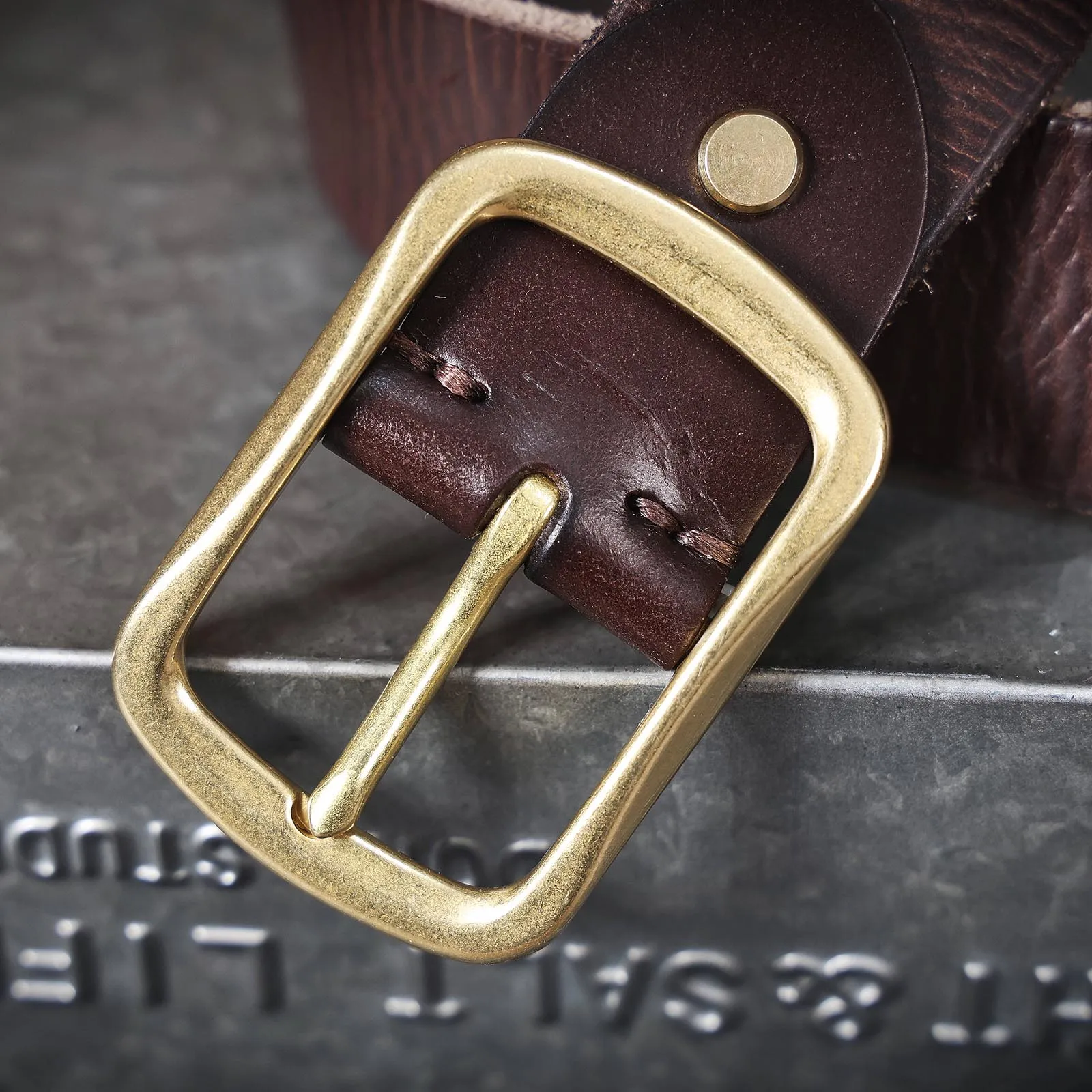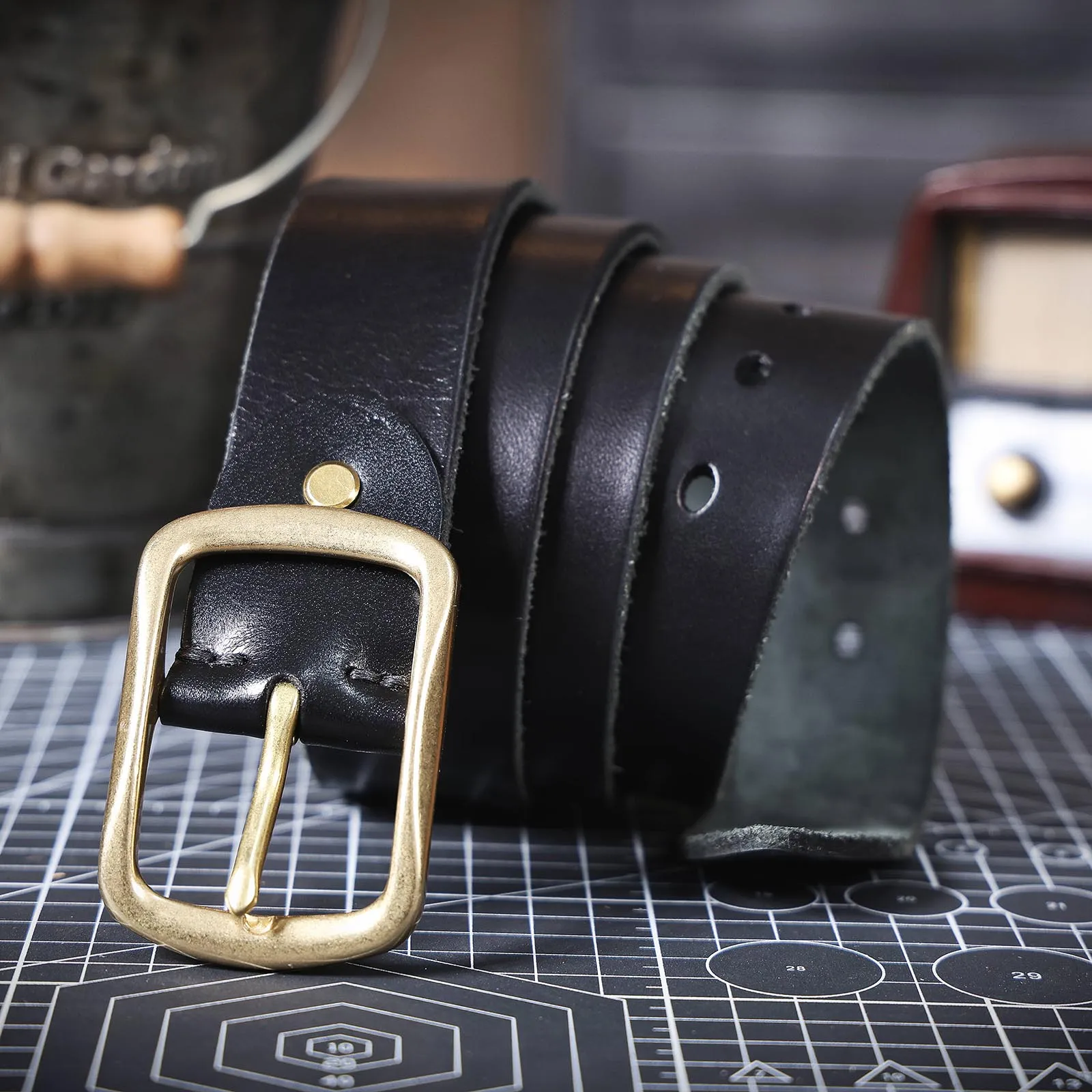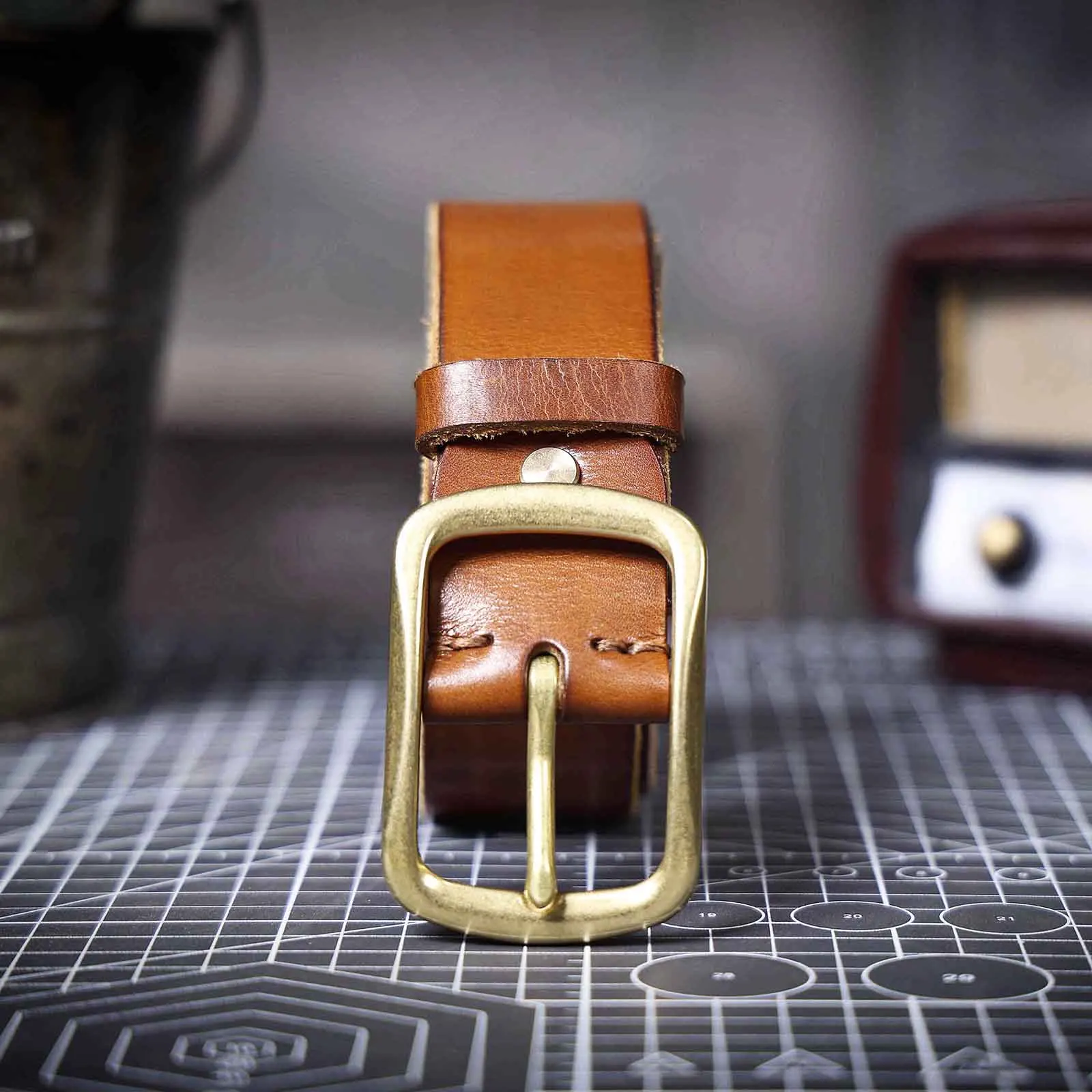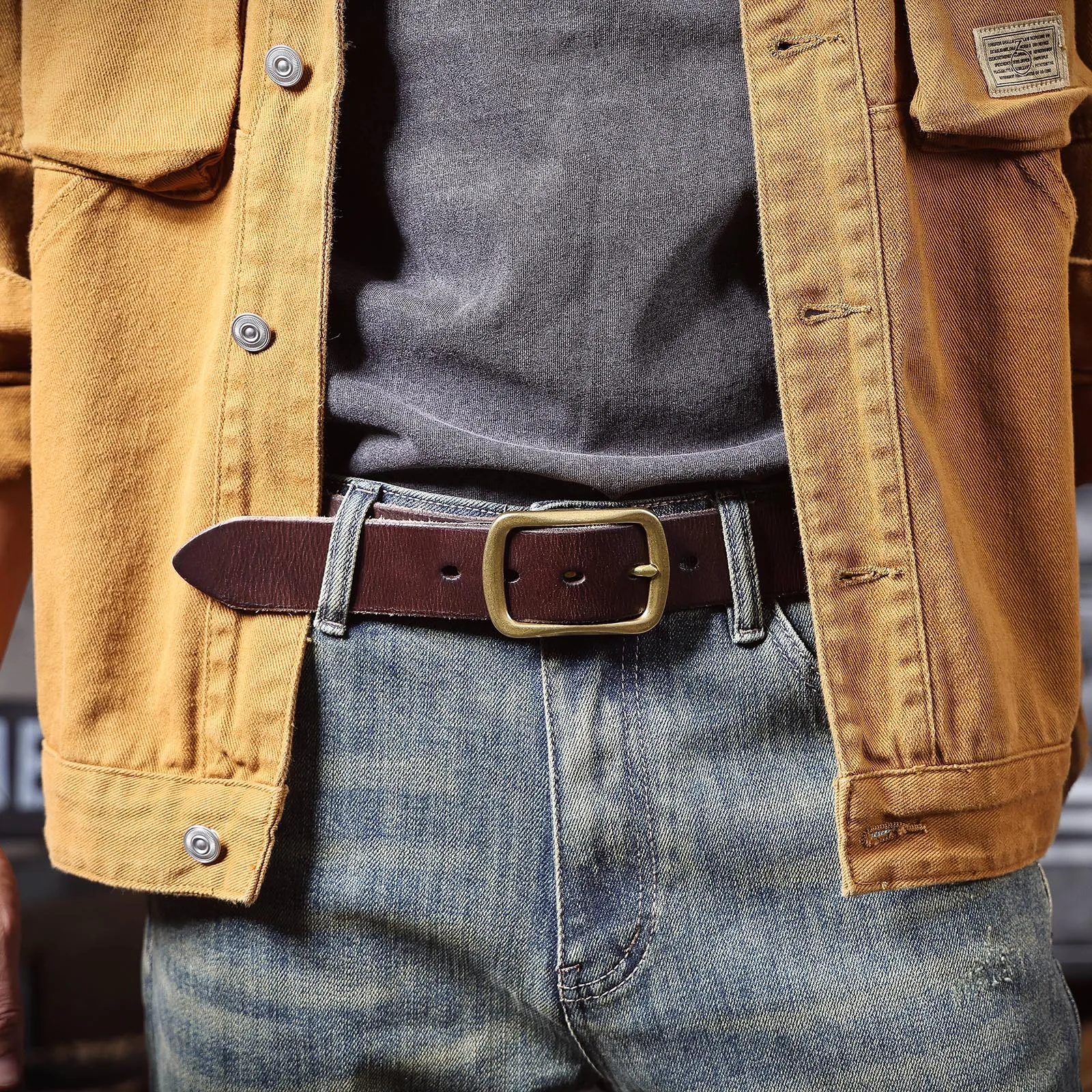 Vintage Genuine Leather Men's Belt With Copper Buckle, Handmade Casual Pin Buckle Belt With Gift Box, Thickened Top-layer Italia