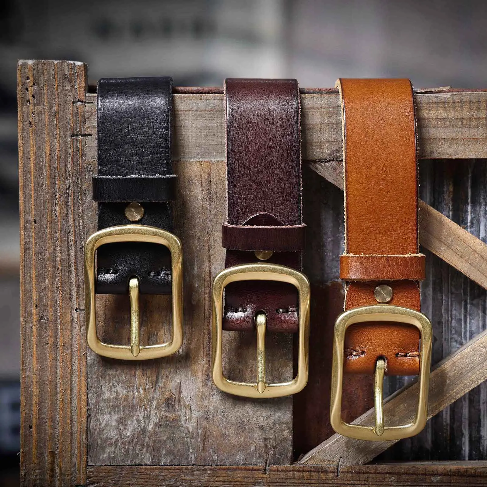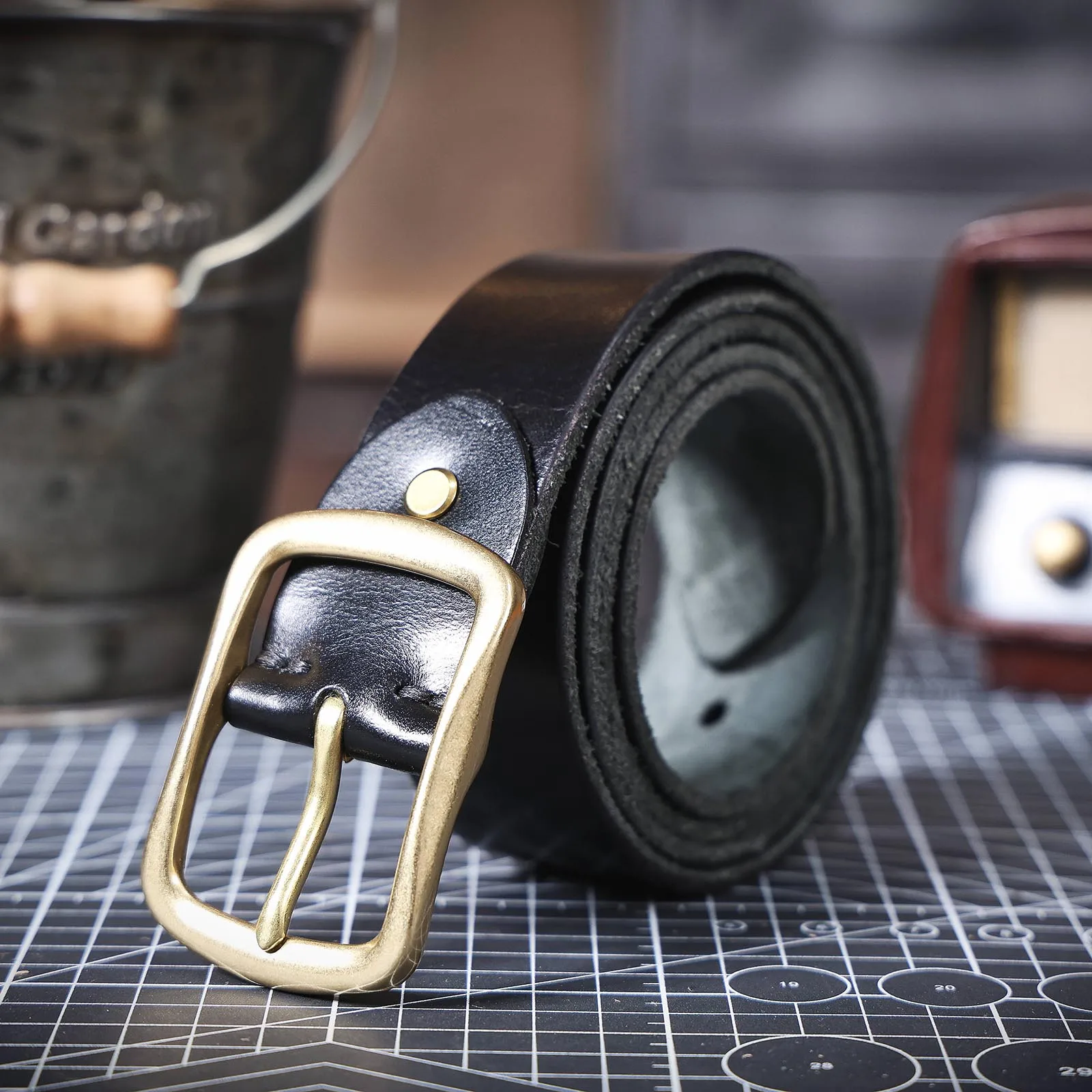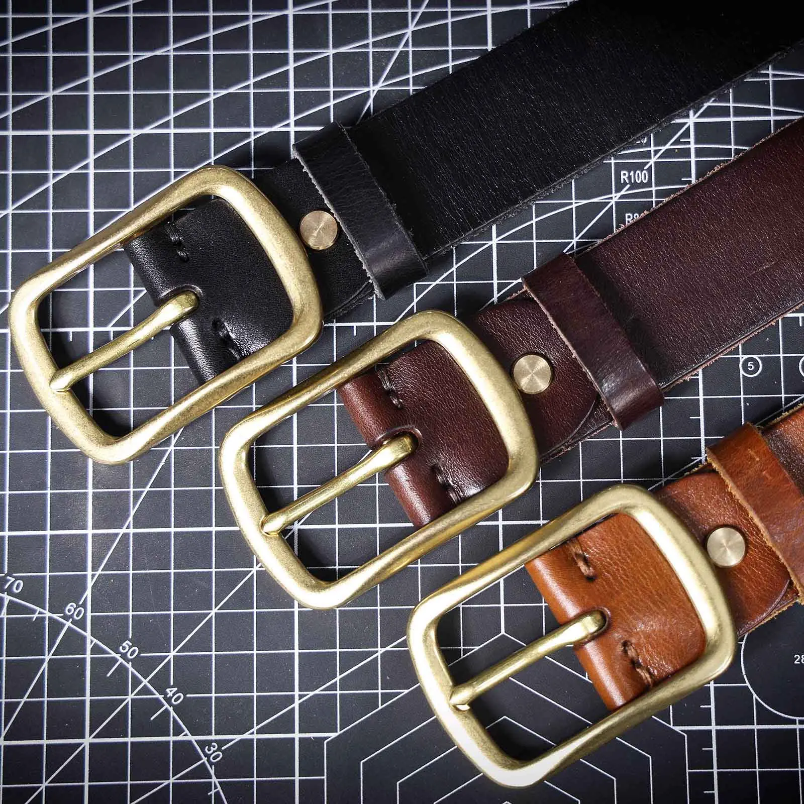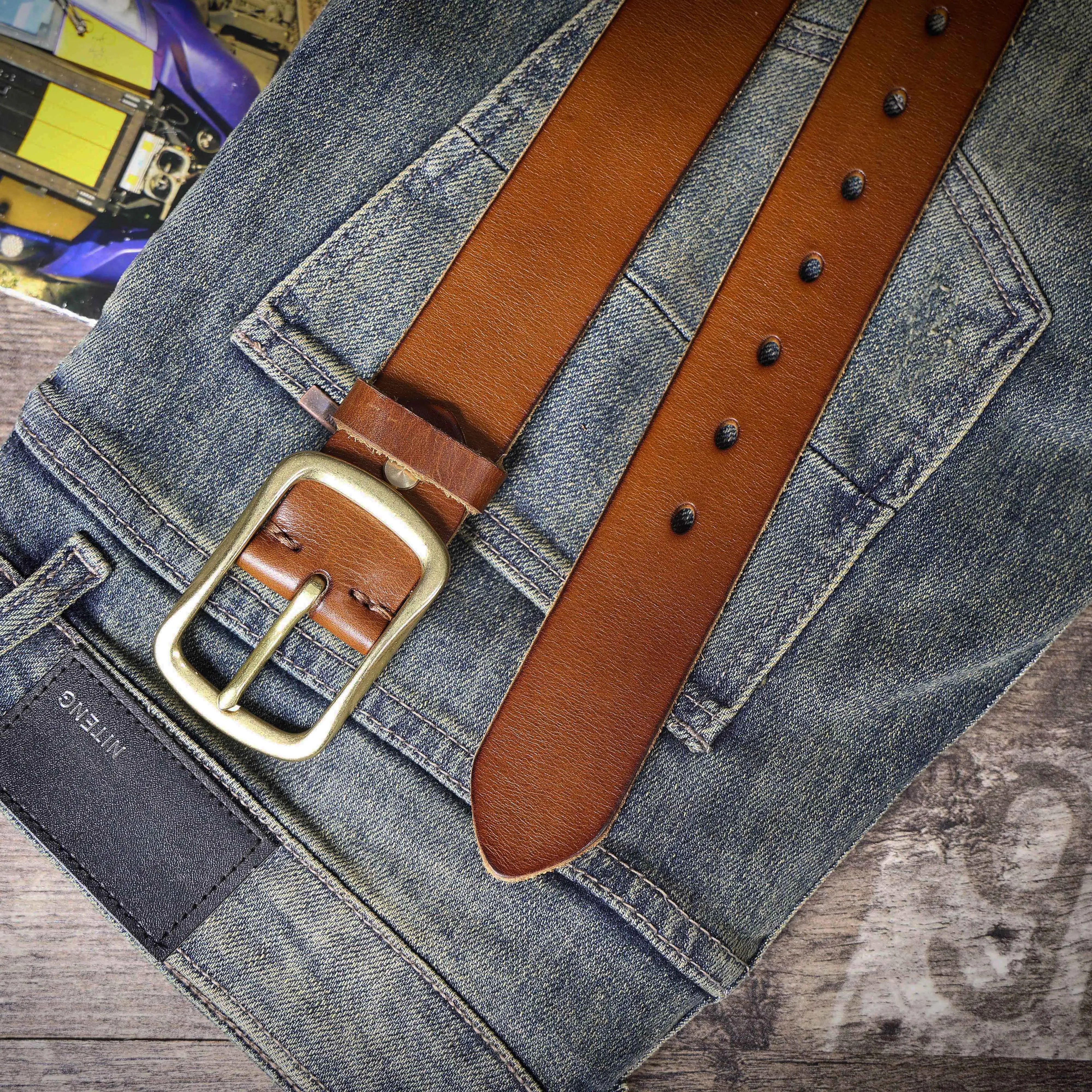 Vintage Genuine Leather Men's Belt With Copper Buckle, Handmade Casual Pin Buckle Belt With Gift Box, Thickened Top-layer Italia