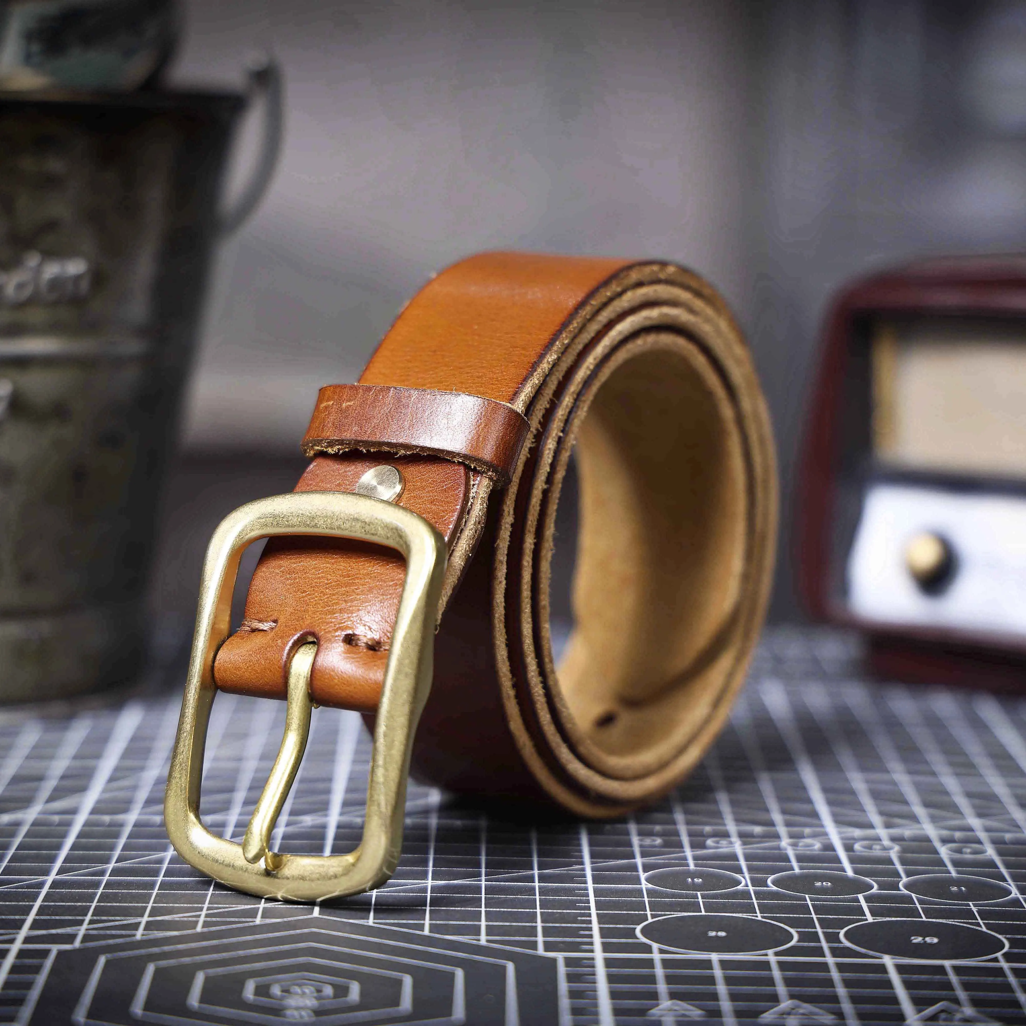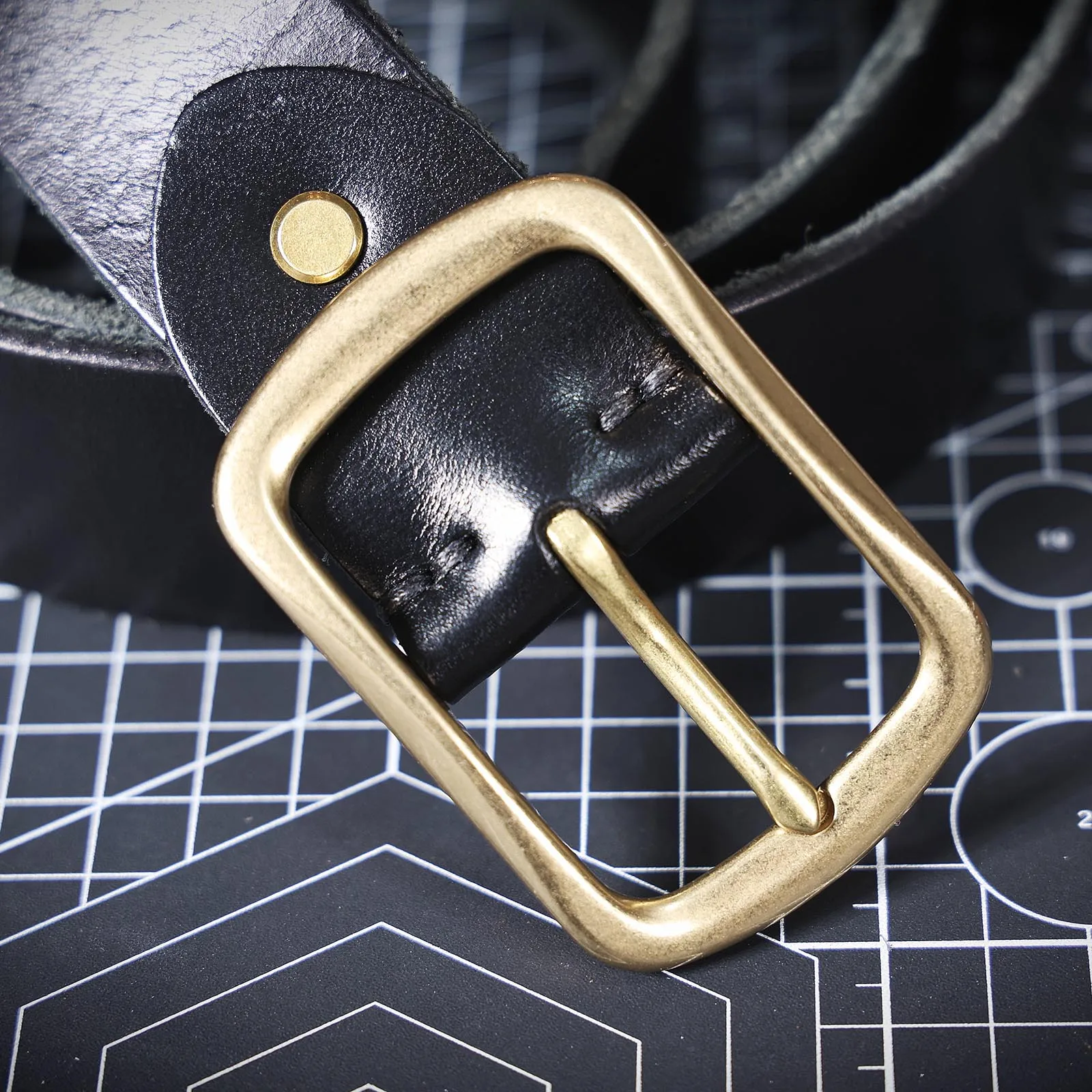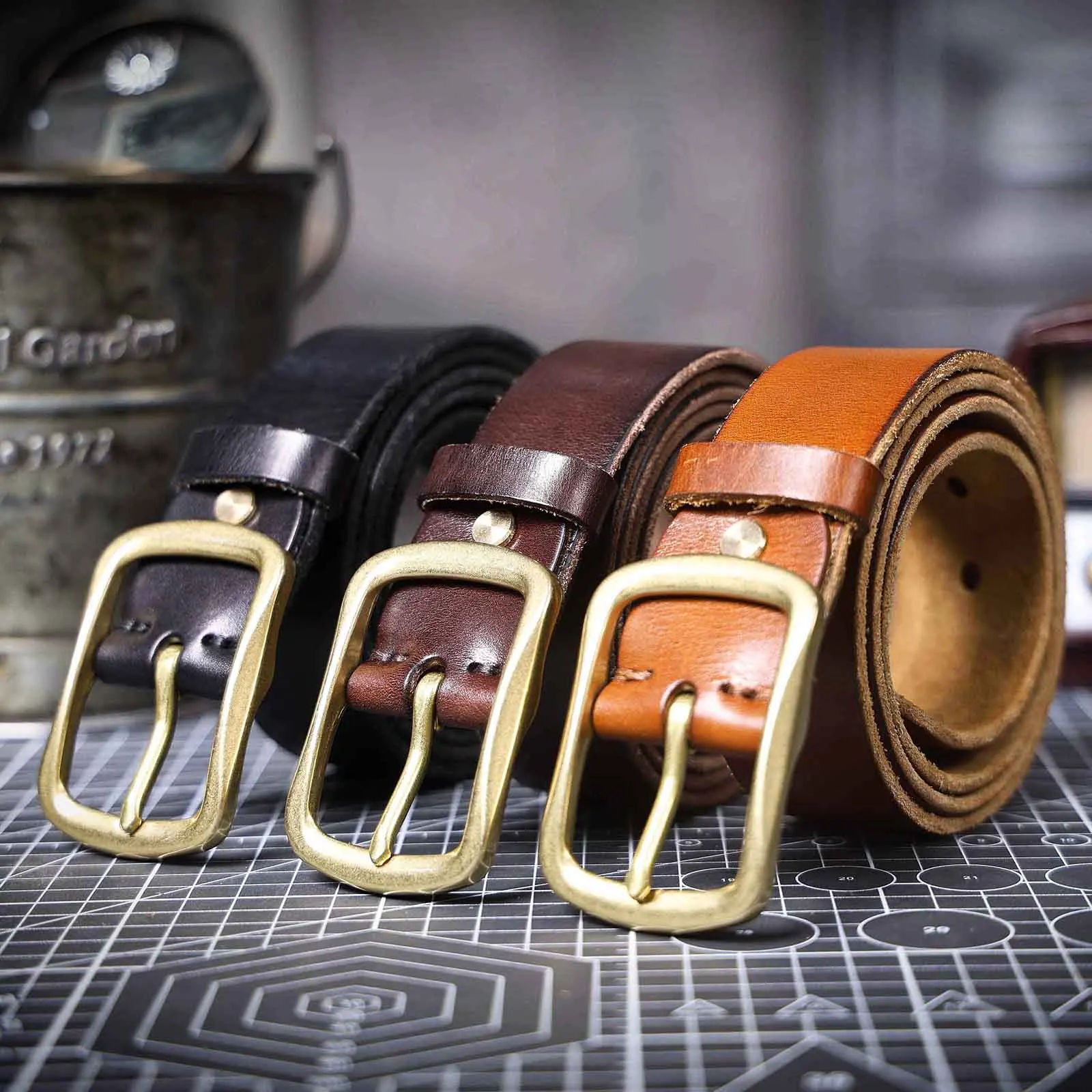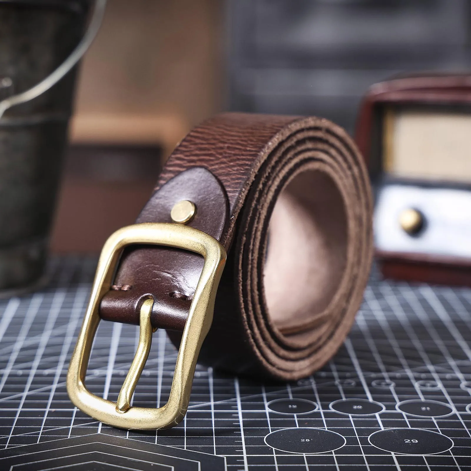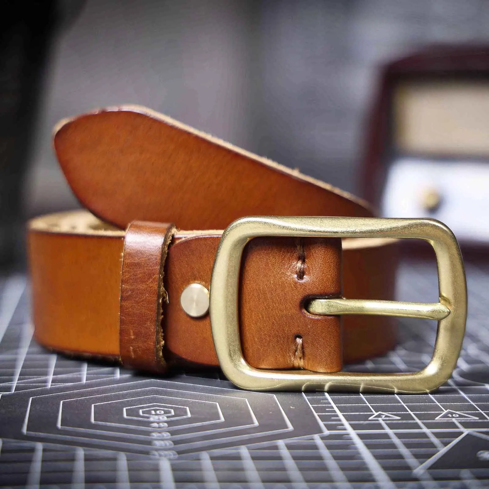 Vintage Genuine Leather Men's Belt With Copper Buckle, Handmade Casual Pin Buckle Belt With Gift Box, Thickened Top-layer Italia