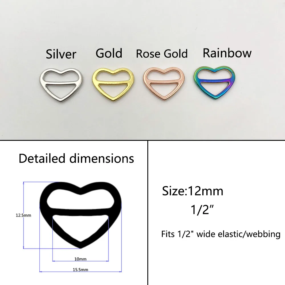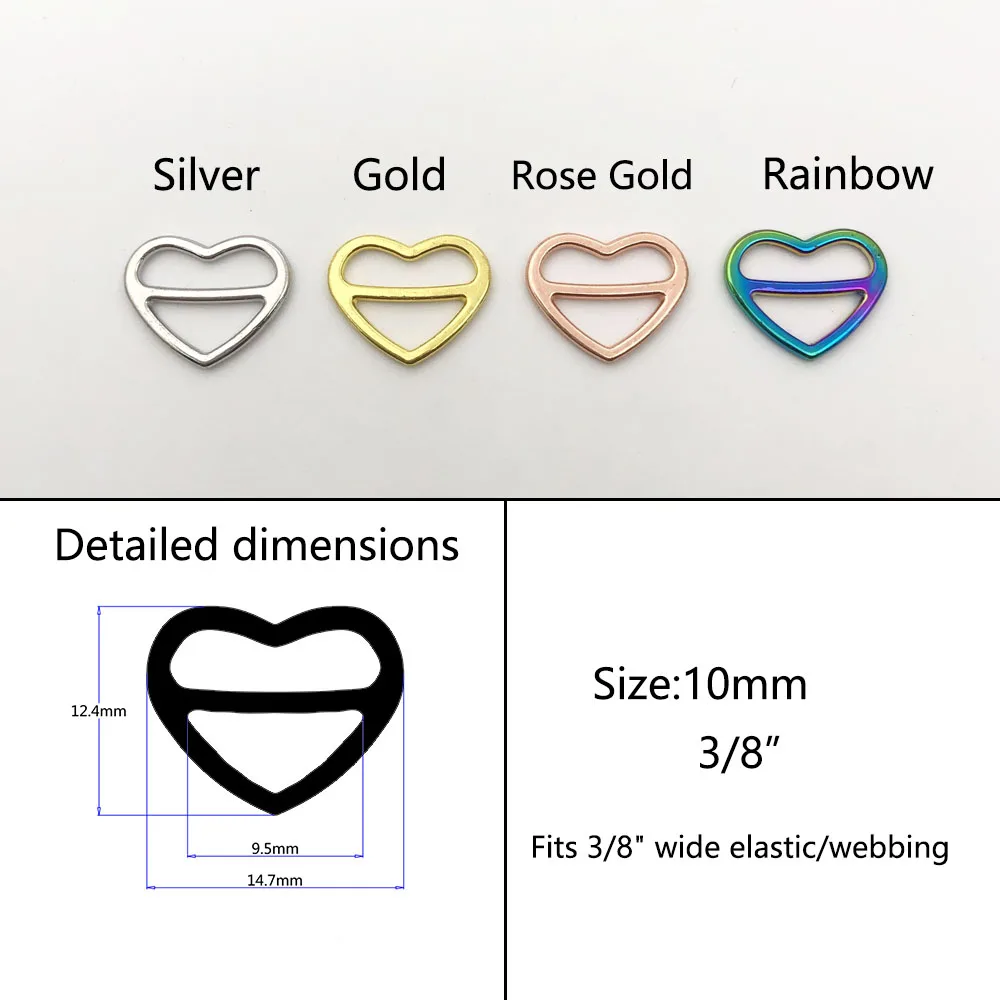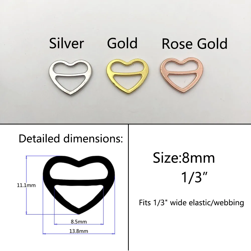wholesales 20 pcs / lot Zinc alloy bra sliders heart shape lingerie strap adjusters swimwear accessory