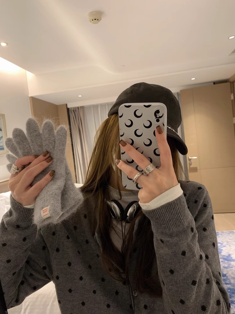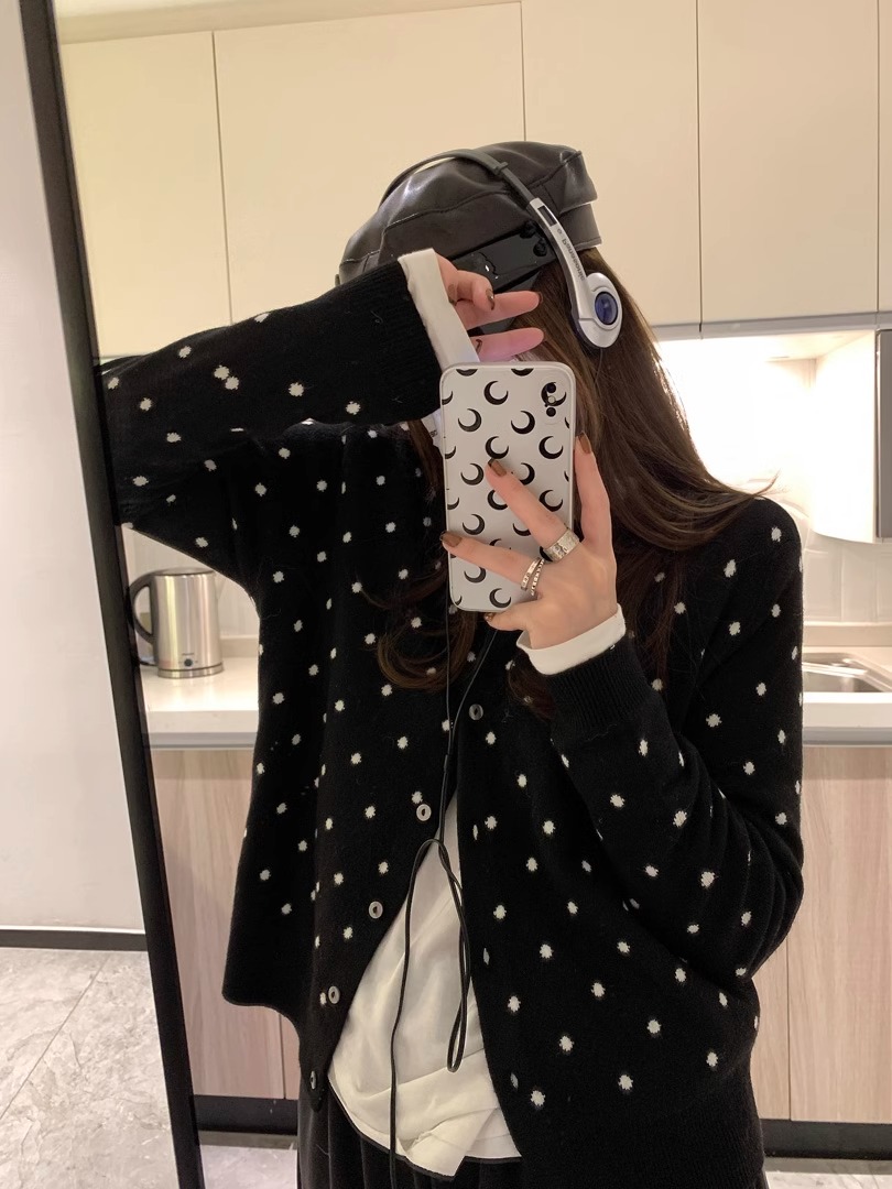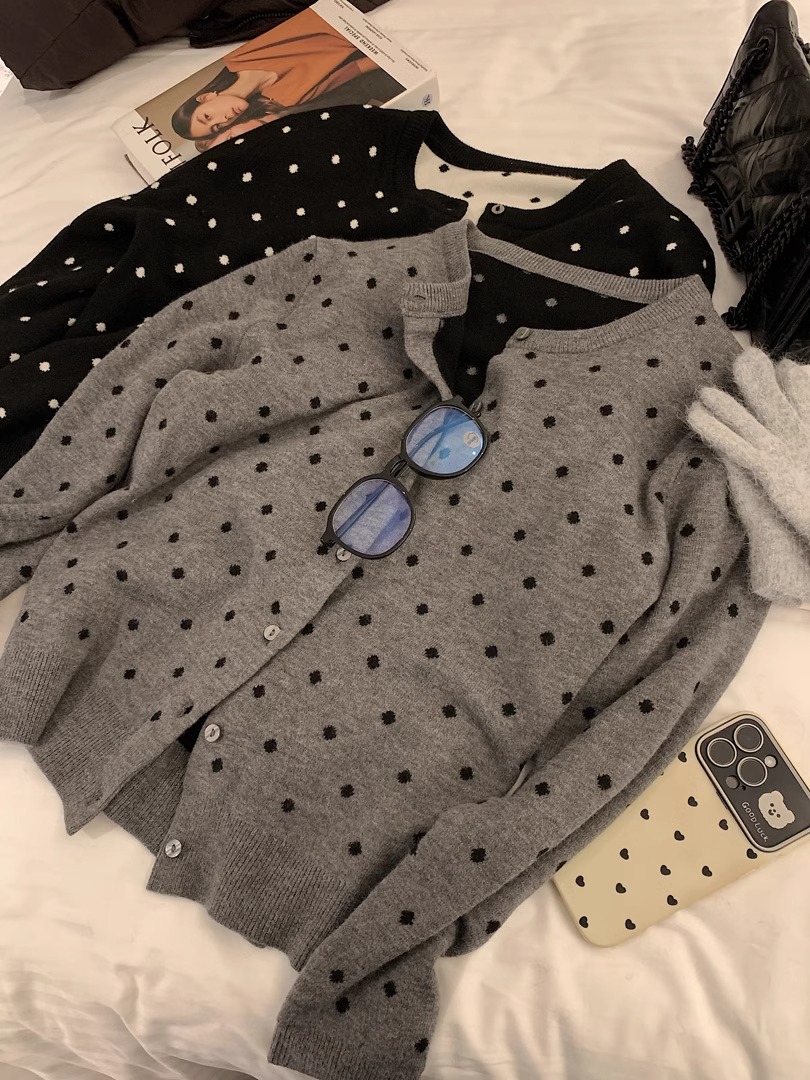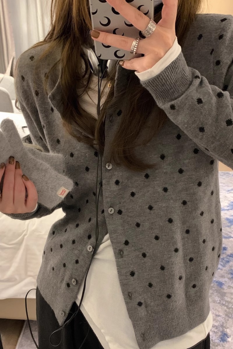 Women's Korean-style Gray Dot Knitted Cardigan Autumn Long-sleeved Top