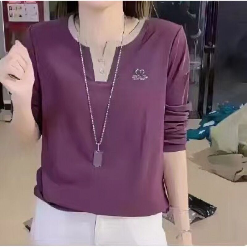 Women's Long-sleeved T-shirt V-neck Bottoming Shirt Hot Rhinestone Casual Top