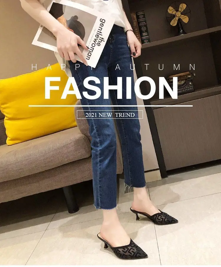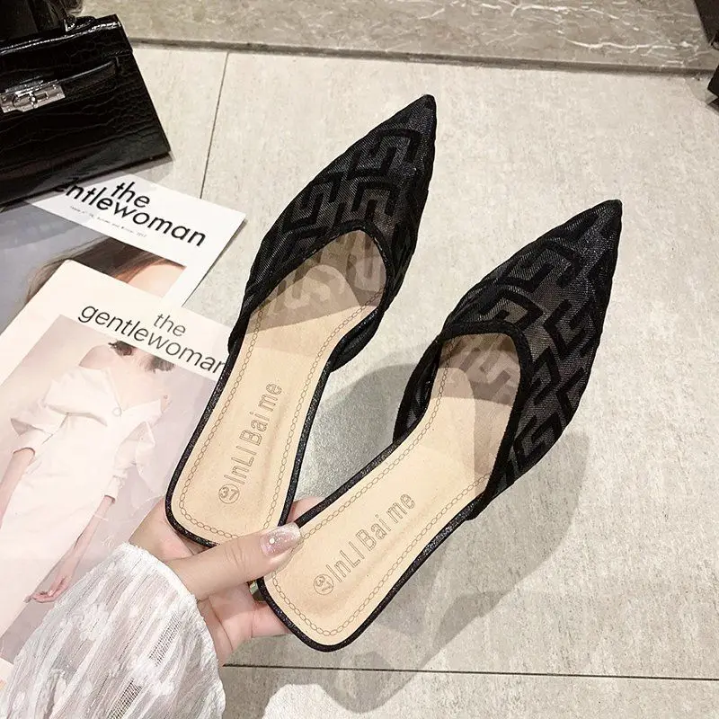 Women's Mules Shoes Designer Comfortable Summer New 2024 With Young On Sale Mirror Luxury Slippers Elegant Fashion Sandals Woman