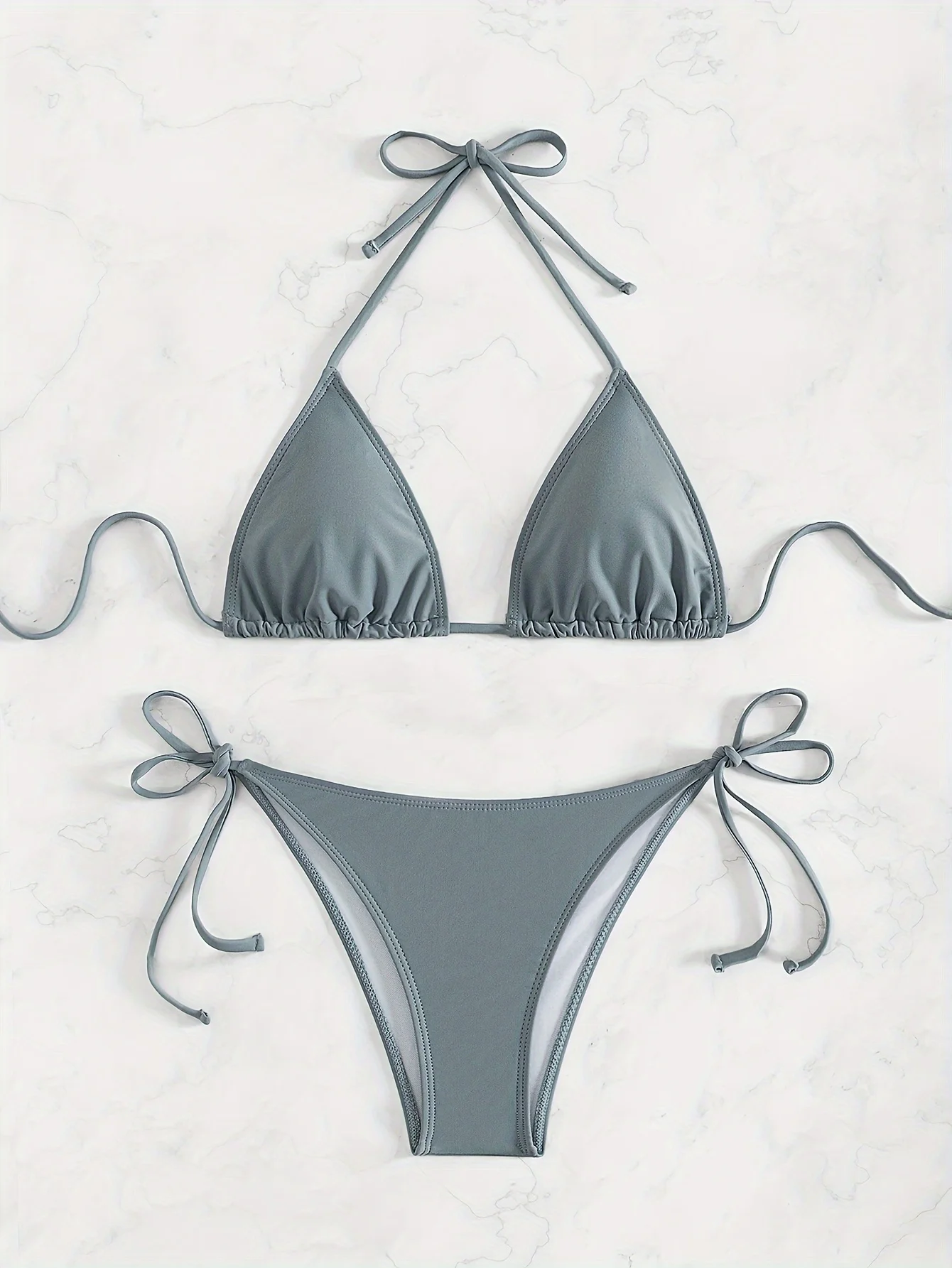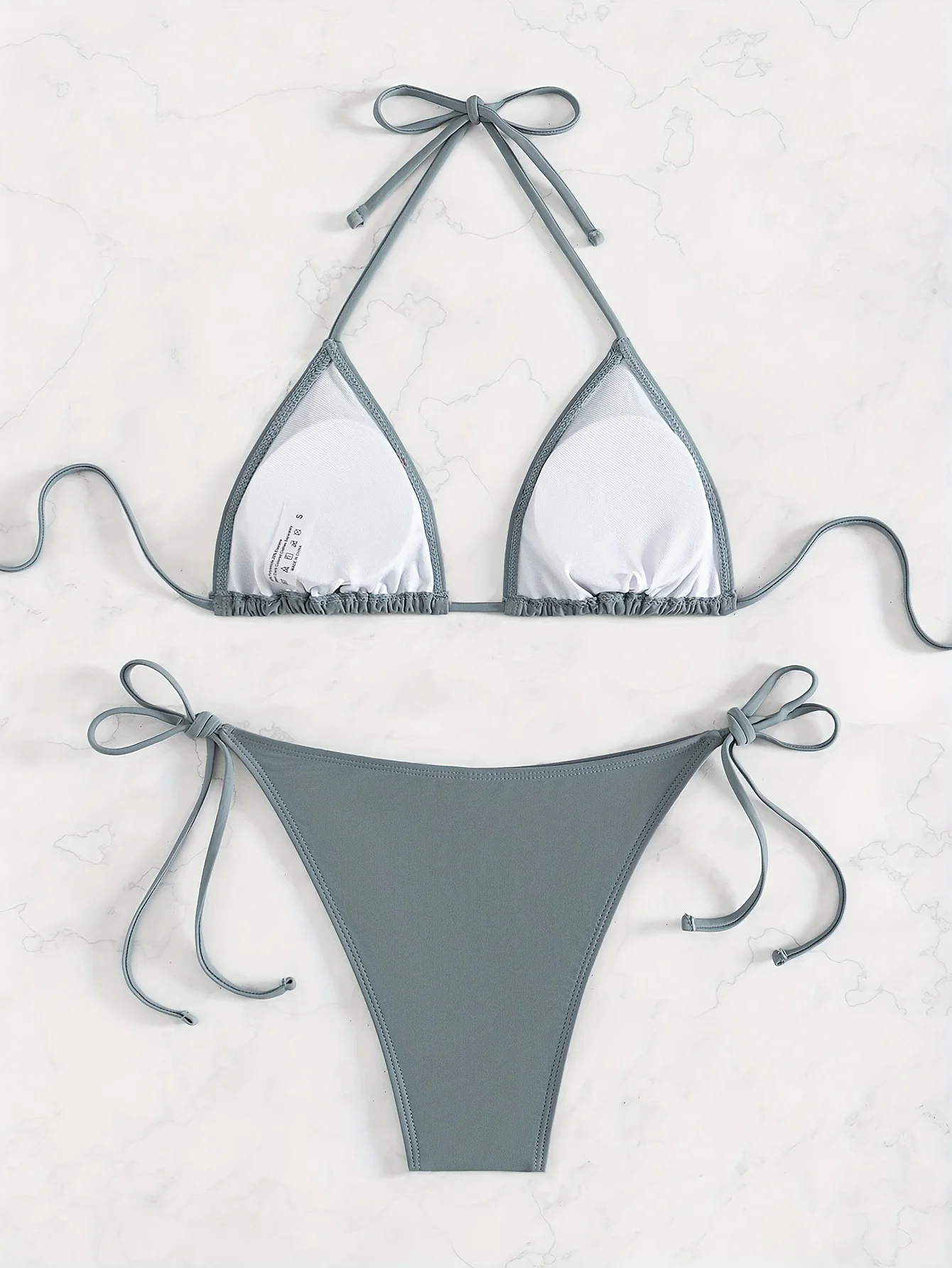 ZTVitality Sexy Solid Swimwear Thong Bikini Set 2025 New Bandage Halter Women's Swimsuit Summer 2 Piece Bathing Suit Biquini